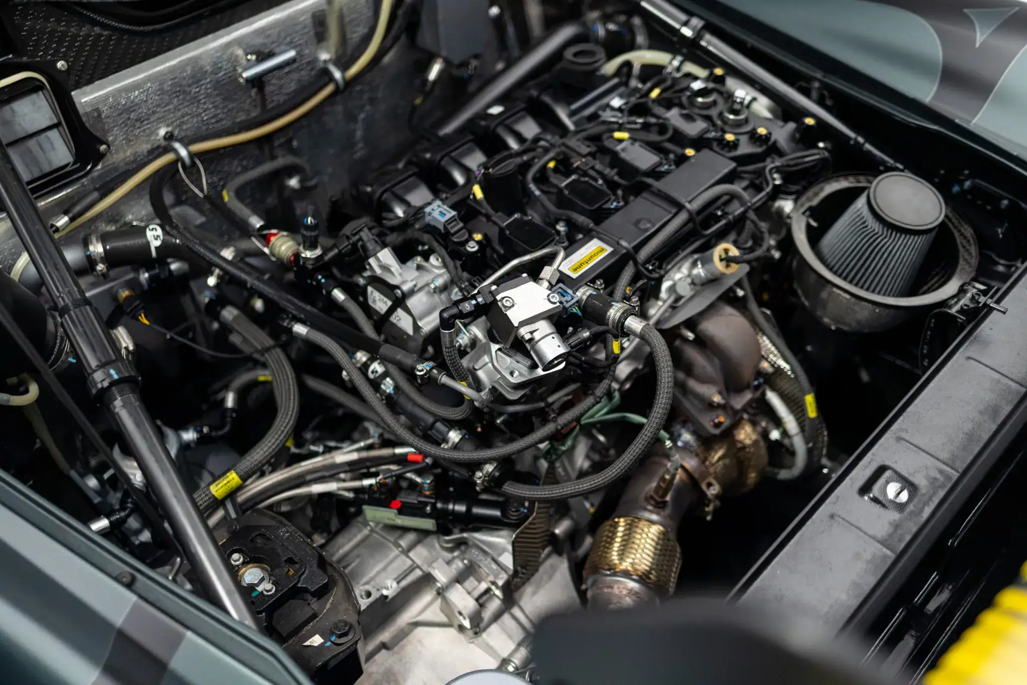 Quasiment faites pour être invendables et sans rien d’utile, qualifiées de Supercars, ces engins sont quasi tous dotés d’une monocoque en fibre de carbone et d’une carrosserie aérodynamique redessinée, peinte en vert avec des touches de jaune, ou l’inverse, voire en teintes changeantes pailletées. Si elles ont toutes des V12, quelques unes un V16 et les autres des V8, il en est motorisées d’un 4 cylindres ! En ce cas, c’est un quatre en ligne EcoBoost 2,3 litres turbocompressé, associé à une boîte-pont séquentielle à six rapports et un différentiel autobloquant Quaife.