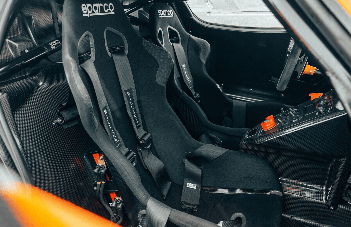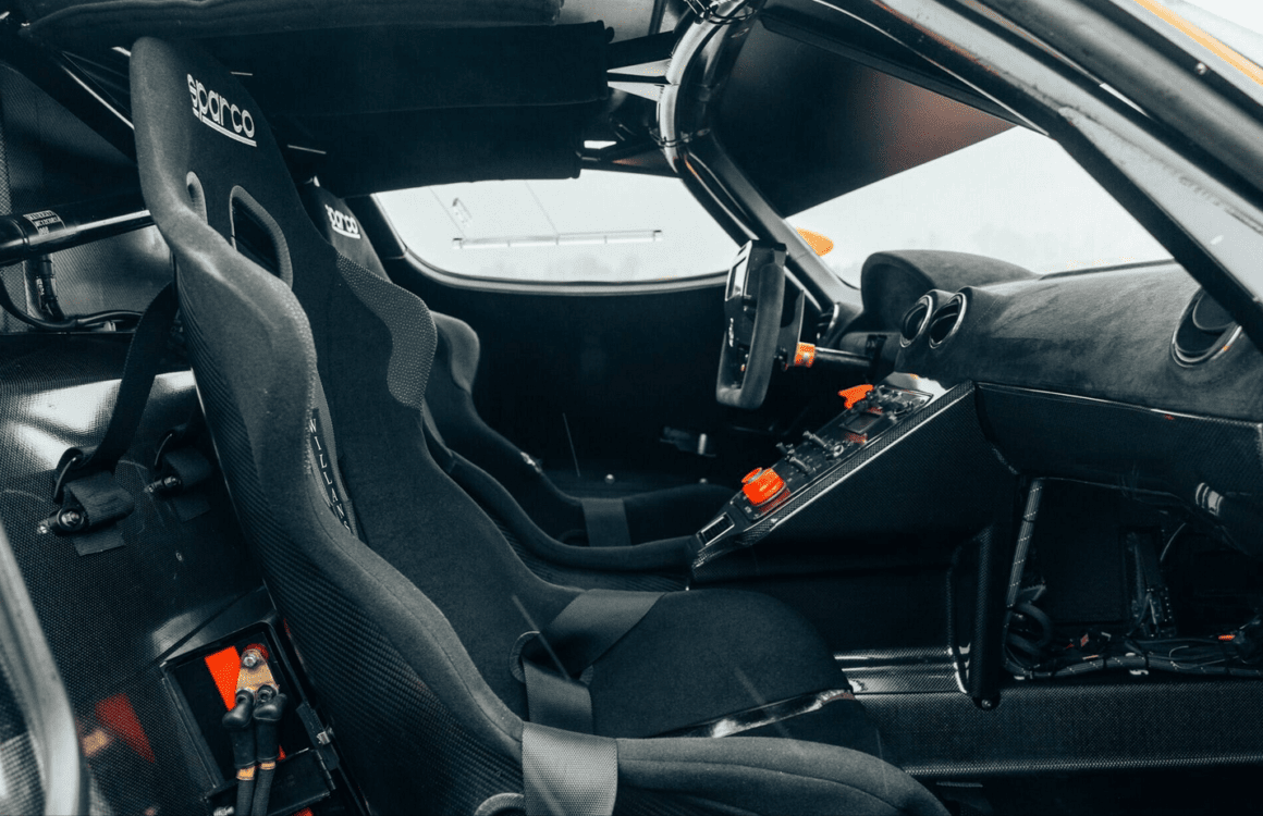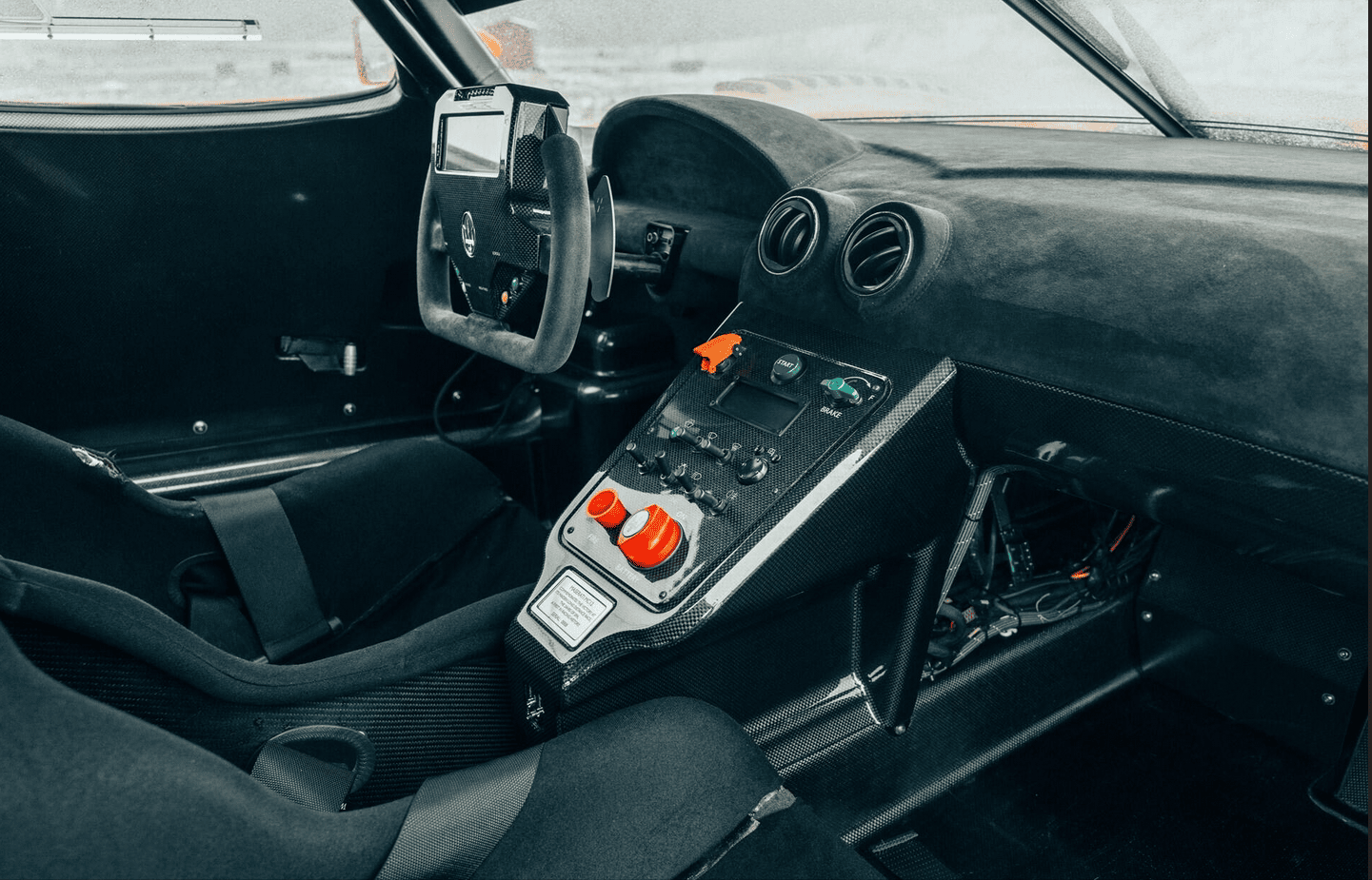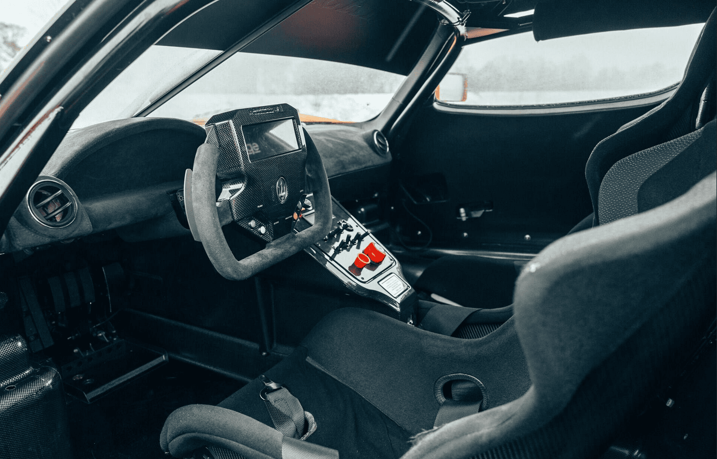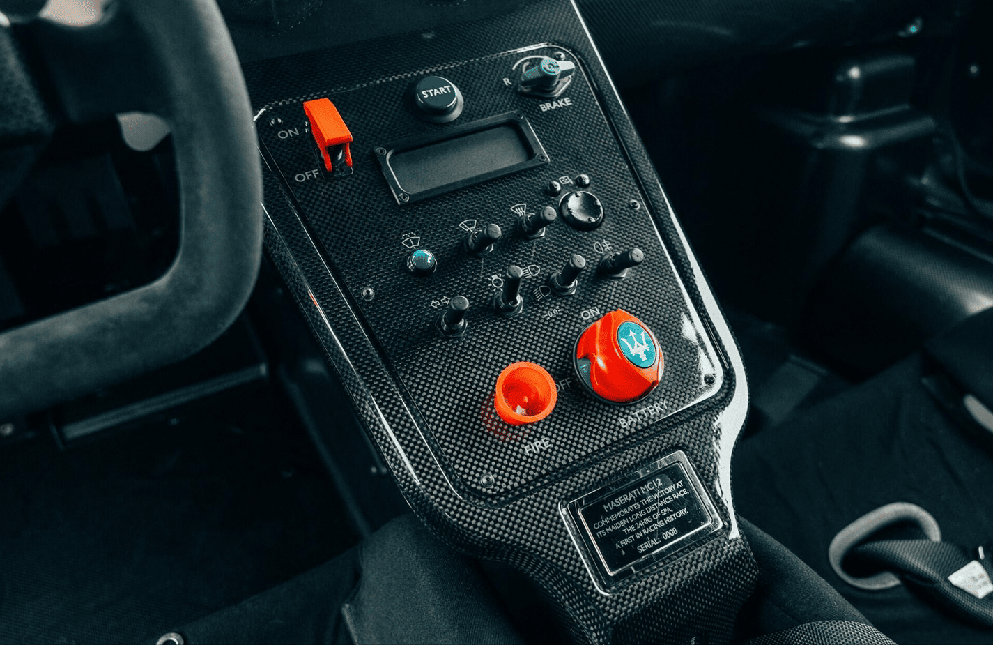 Une fois installé après s’être contorsionné en tous sens, on est vraiment assis par terre… La position de conduite est moins que potable et plus ou moins réglable, tandis que les sièges baquets maintiennent (gag !) le corps d’autant plus que le conducteur est grand et large… C’est presque un siège baquet automatique et au vu des performances annoncées, et c’est mieux ainsi. Toute la platine centrale est recouverte d’aluminium très mal découpé, avec certains bords semi-ébréchés… et l’habitacle est traité en cuir et feuilles de carbone apparent, le tout fixé avec des vis apparentes… Un vrai massacre comparé à une Peugeot, à des années lumière de la finition d’une Rolls-Royce Phantom deux fois moins chère. Le cout de revient de cette Maserati MC12 n’était réellement pas très lourd, mes oreilles trainant un peu partouze, un prix de 50.000 euros m’a été rapporté, ce qui laissait un bénéfice surréaliste de 20 fois le coût par MC12 vendue, pas loin d’une Enzo malgré tout légèrement un peu mieux finie…