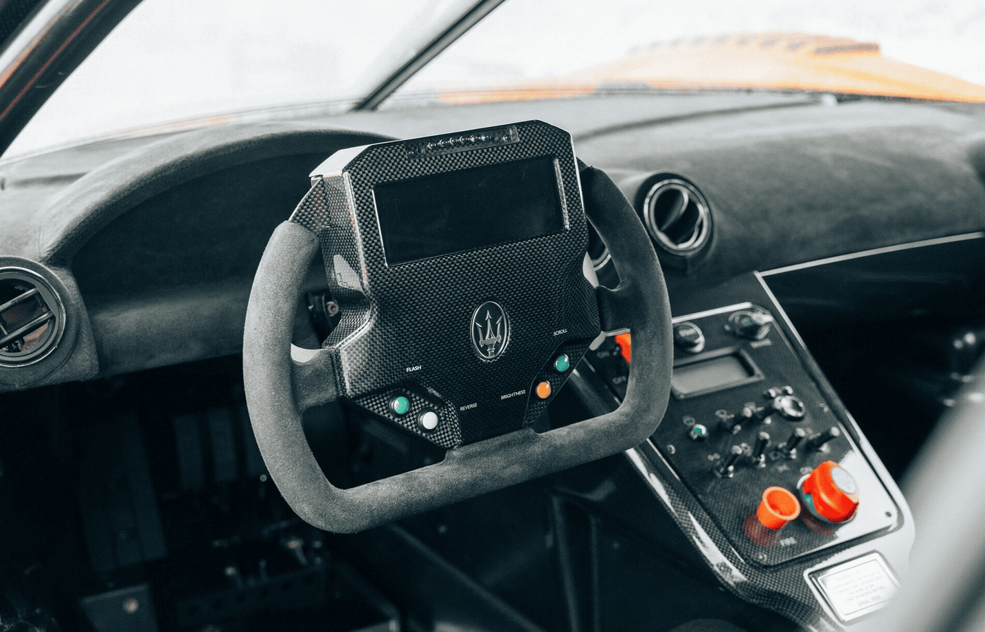 Les freins étaient également touchés par les limites du règlement imposé par la FIA en GT… Les disques au diamètre conséquent pincés par des étriers Brembo six pistons, étant en acier et non en carbone. En complément pour la version routière, un ABS était monté et un antipatinage venait épauler le pilote (la clientèle visée n’étant que des tycoons et nababs sans aucune connaissance particulière de la course automobile, il fallait donc éviter qu’ils se tuent trop rapidement au volant en croyant jouer aux 24h du Mans). La version course qui n’avait pas le droit à ces aides “à la conduite” était donc plus simple encore, ce qui “justifiait” un prix de vente encore plus élevé… Entre-nous, nous n’en avons pas plus à f… de Ferrari, Maserati et Fiat qu’eux de vous et moi… Ils ignorent votre existence, ils ne connaissent les gens qu’en fonction de l’argent qu’ils payent et encore, faut-il que ce soit une Enzo ou une MC12, sinon ils restent des consommateurs… J’applaudis toutefois au génie de peut être réussir à vendre plus de 3 millions et demi, une voiture qui coutait 50.000 euros à fabriquer…