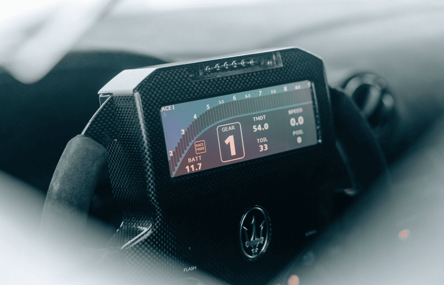 Mode d’emploi… Le mode Race retarde l´intervention de l´ASR et optimise l´injection et la vitesse de passage des rapports… Trois paramétrages du stupide antipatinage sont disponibles à partir des boutons situés sur la console centrale : Normal, Race ou “Sans filet“… L´absence de pédale d´embrayage et les palettes situées derrière le volant doivent spermettre à l’intrépide conducteur millionnaire ou beaucoup plus, de se concentrer exclusivement sur la conduite et d´enchaîner les vitesses en un éclair…. Ouaihhhhh ! La marche arrière se déclenche au moyen d´un Nième bouton et le “point mort” s´obtient en tirant simultanément sur les deux palettes… Surréalistement compliqué… La pédale d´accélérateur électronique (by Wire) est sensible pour autoriser un dosage précis des gaz… Doté d´une programmation d´injection spécifique, le V12 de la Maserati MC12 se caractérise par sa sonorité plus grave à l´accent légèrement américain… C’esr-y pas consuméristement crétin ?