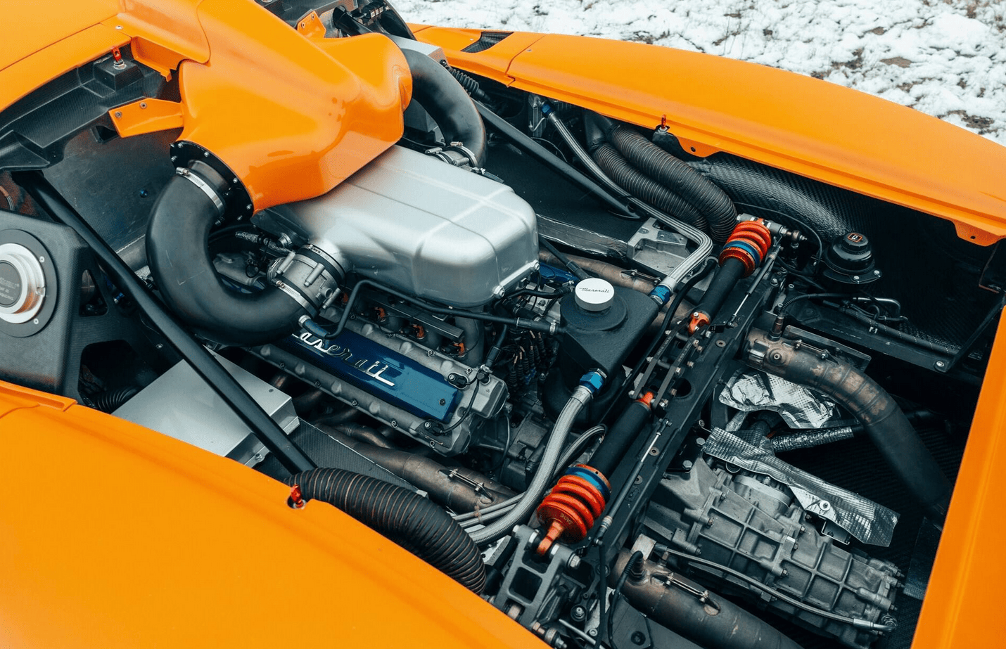 De plus, en reprenant le moteur V12 de la Ferrari Enzo, Maserati ne s’est pas cassé le c… Mais pour conserver une sorte de hiérarchie dans le groupe, la Maserati MC12 version route était vendue légèrement moins puissante que la Ferrari Enzo avec 630cv au lieu de 660, ce qui n’était en fait qu’une simple donnée catalogue destinée aux journaleux en manque d’idées afin qu’ils écrivent des comparatifs inutiles. Les performances annoncées par l’usine (0 à 100 km/h en 3,8 secondes, 330 km/h en pointe et le km DA en 20,1 secondes), étaient d’autre part invérifiables… Que cela soit sous le capot de la Ferrari Enzo, ou celui de la Maserati MC12, la sonorité de ce V12 glace toutefois toujours le sang à l’arrêt mais casse les oreilles au delà de quelques kilomètres… et les couilles au delà de 160 km/h…. Pour la boîte de vitesse, n’allez pas croire qu’il s’agissait d’une boîte Cambiocorsa, bien qu’elle en portait le nom, c’était une arnaque destinée aux connaisseurs…, c’était en réalité une boîte séquentielle accouplée à un embrayage bi disque…