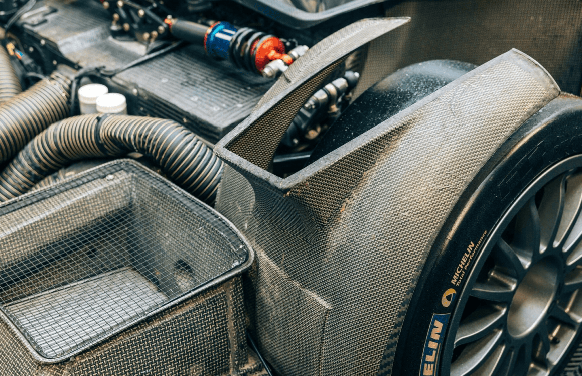 En fait de “châssis“, c’était la cellule centrale en carbone que sur la Ferrari Enzo sur laquelle étaient fixés deux berceaux en aluminium supportant les trains roulants et l’ensemble moteur-boîte. C’est Giorgio Ascanelli qui avait travaillé sous la direction de Claudio Berro pour la conception du “châssis” de l’Enzo, châssis qui était utilisé pour la MC12… Châssis qui a gardé la particularité de se briser en deux à l’arrière de l’habitacle lors des ondulations pendulaires en cause de routes “vallonnées”… Le tout était excessivement simple à construire, donc peu couteux, et c’était le but, faire un max de pognon… Pour “faire zoli”, au bout des bras de suspensions, de belles jantes de 19 pouces de diamètre étaient montées et chaussées de très larges pneus en 245/35 à l’avant et 345/35 à l’arrière ! Les 50 propriétaires des versions routières avaient donc la satisfaction d’avoir des jantes un poil plus grandes en diamètre que celles des MC12 de course, puisque la FIA interdisait de monter des jantes de plus de 18 pouces…