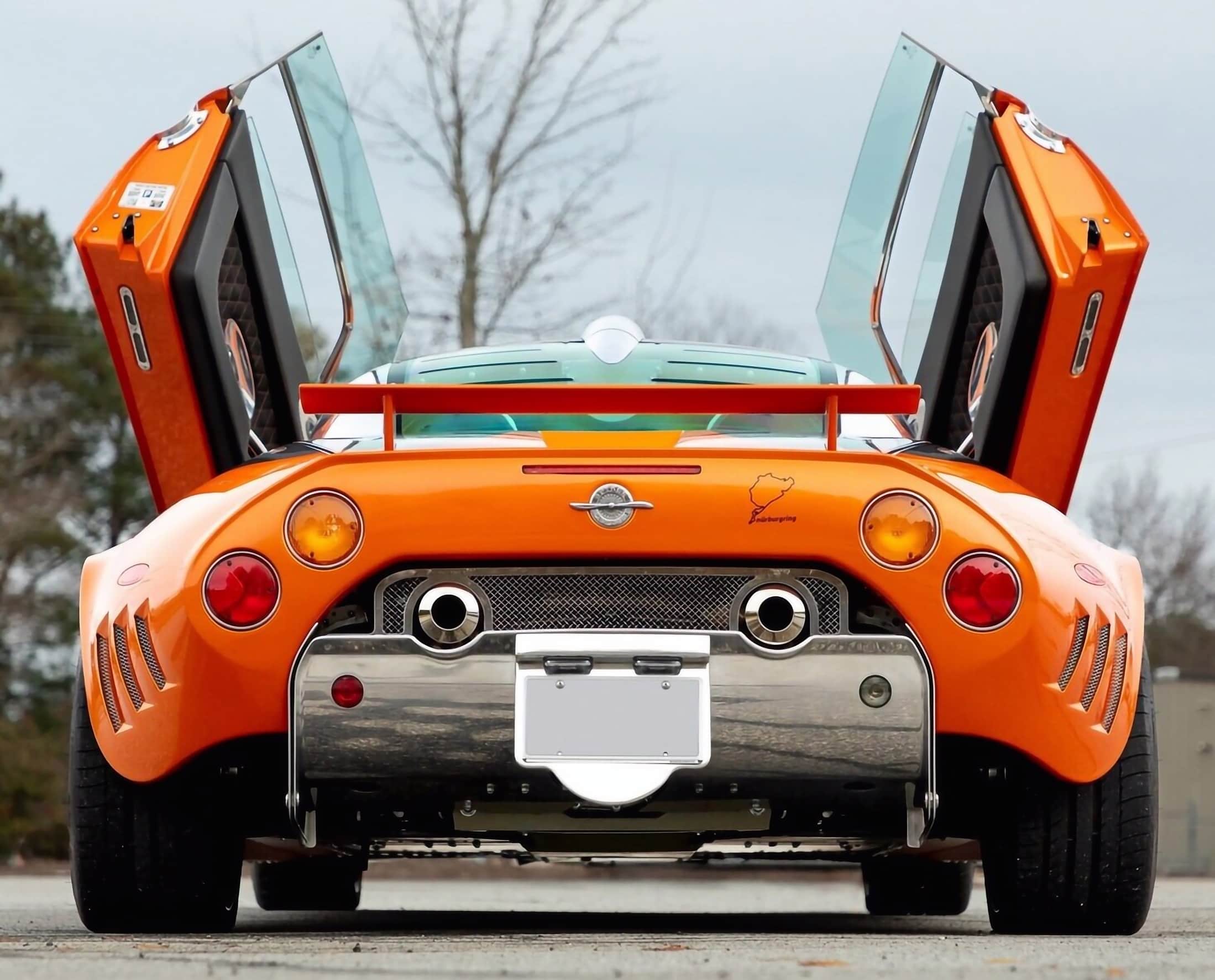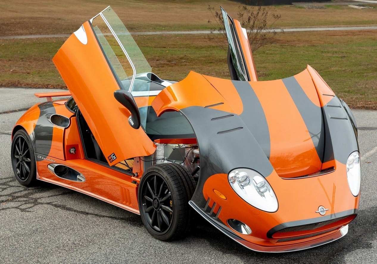 La Spyker C8 Laviolette n’est pas une voiture pour ceux qui préfèrent garder un profil bas : elle ne laisse pas d’autre choix à son propriétaire que de faire une entrée suivie d’une sortie (l’ordre logique) de n’importe quel endroit qui ne peut qu’être exceptionnel… Tout s’y prête… En appuyant doucement sur le bouton ad-hoc de la télécommande de la voiture… et la porte à charnière avant côté conducteur s’élance vers le ciel… Spermettez-vous de pénétrer la belle…