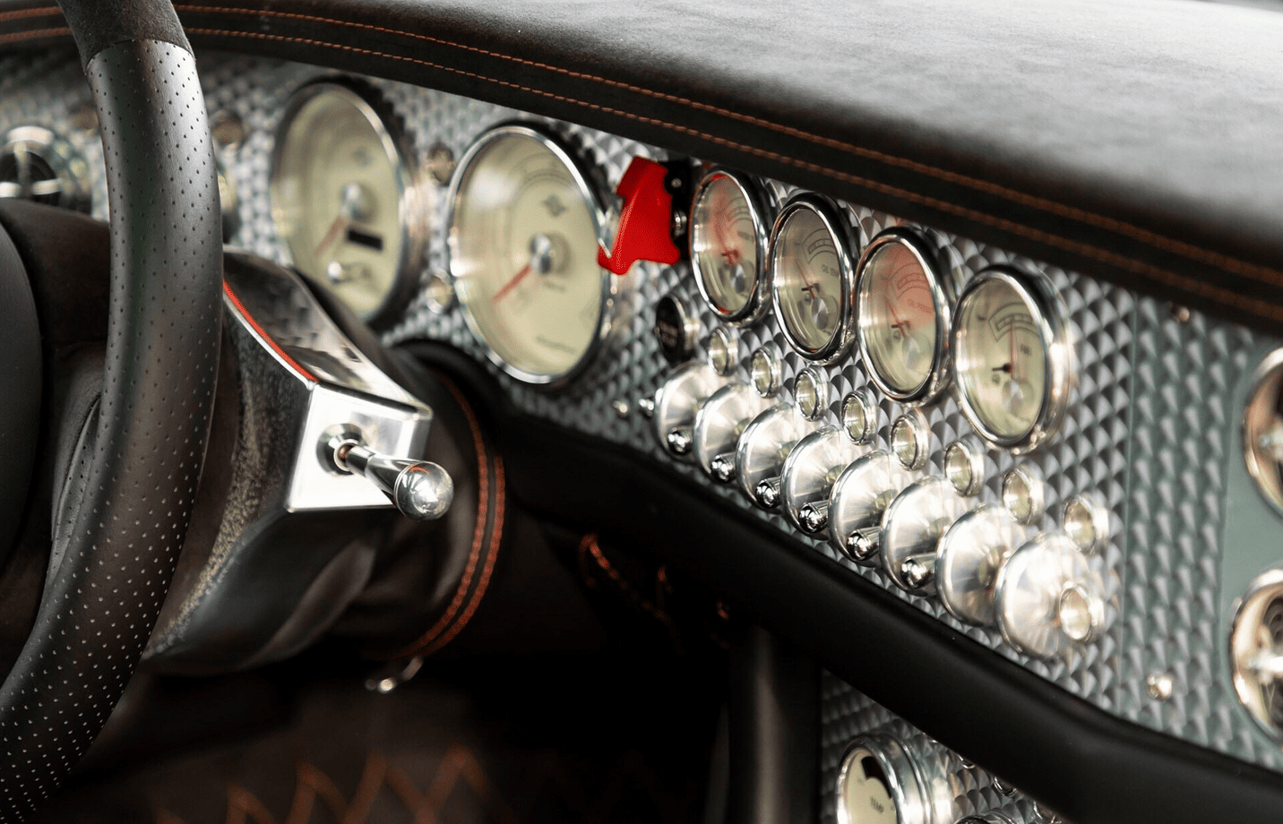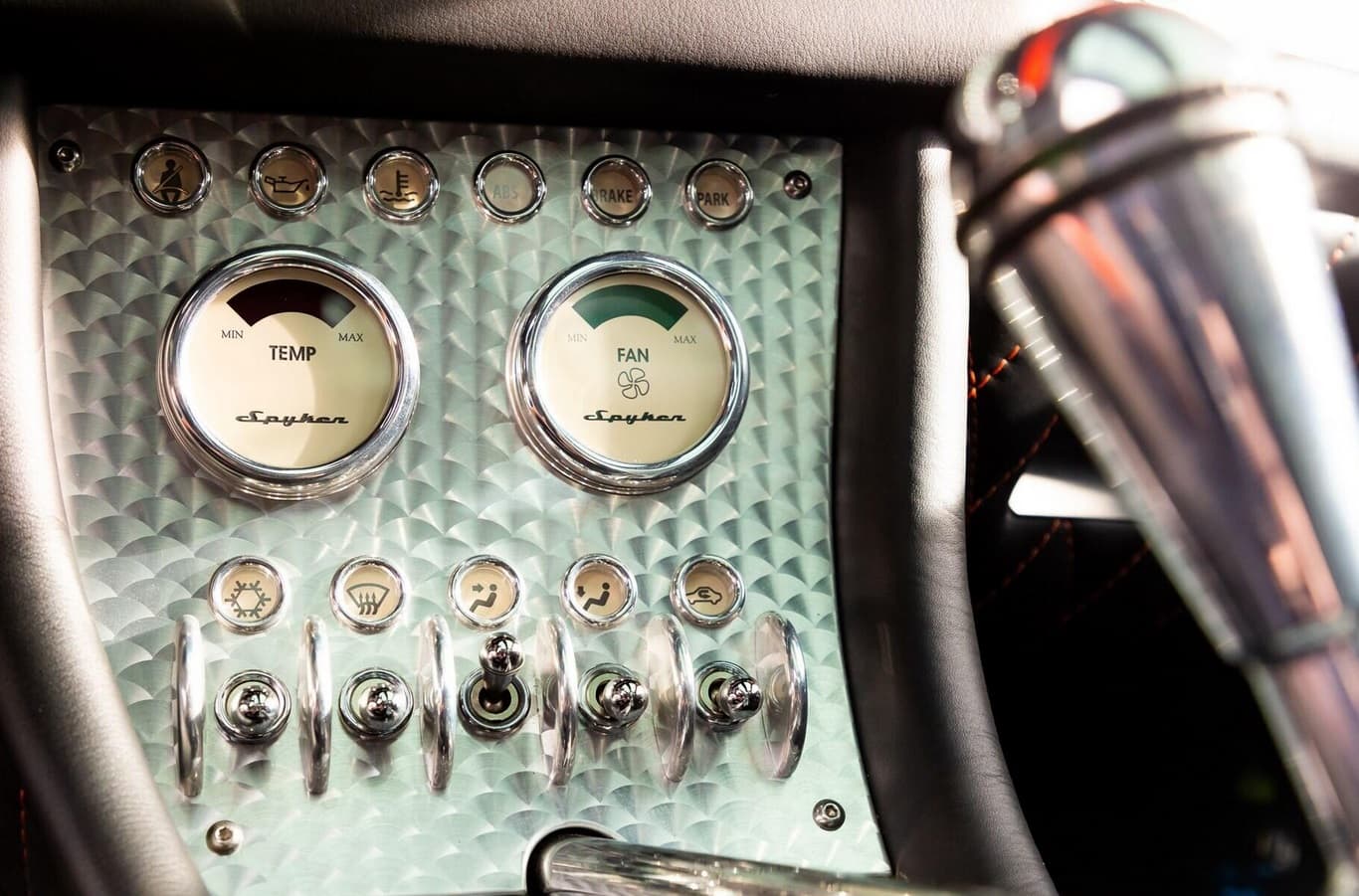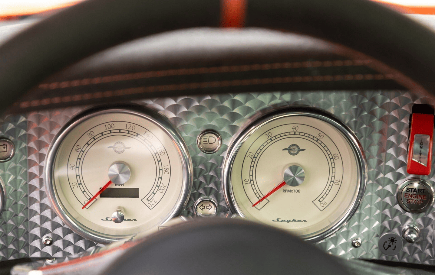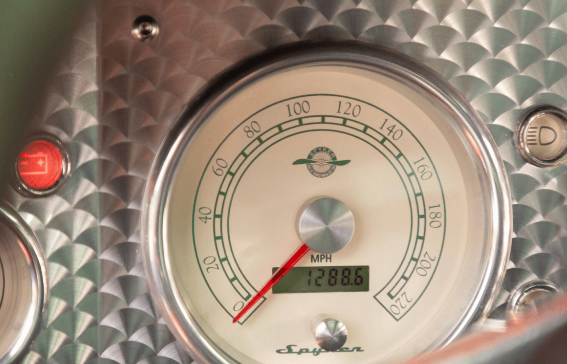Elle est exposée à la mer de cuir matelassé, en passant par le tableau de bord en aluminium tourné à la machine. Et, le volant, qui rappelle également une hélice d’avion, est une œuvre d’art si exquise que vous pourriez être tenté d’en voler un dans un parking d’hôtel 12 étoiles et le monter sur le mur de votre bureau… Lorsque vous vous glissez dans le siège étanche de la Spyker, vous ne vous asseyez pas tant dans la voiture que vous ne la portez.