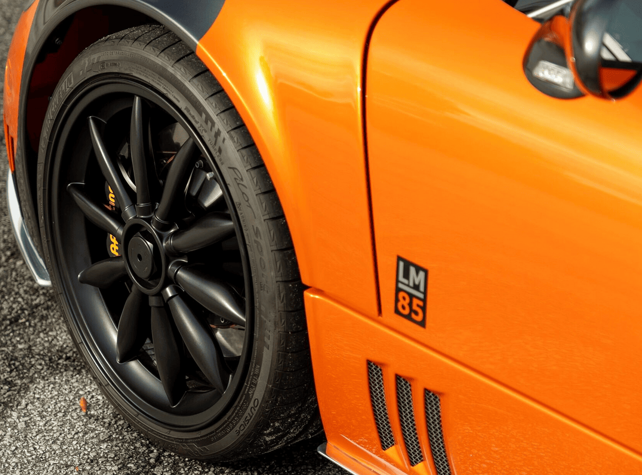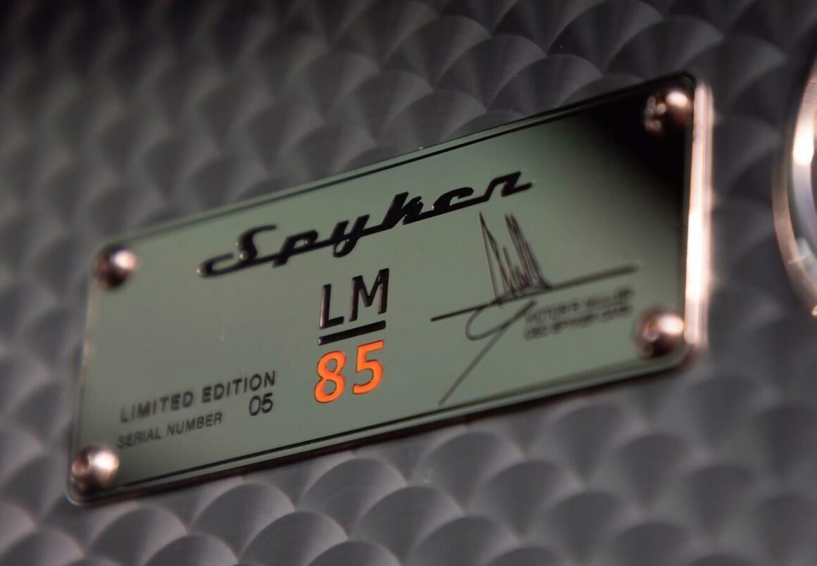 Chacune des quatorze a été fabriquée et vendue dans la livrée de course Orange et gris anthracité, inspirée de la “Spyker Almond Orange” de course du Mans comprenant toutefois en commercialisation, un habitacle en cuir noir et Alcantara orange. Construite en mars 2009 “à la main” dans l’usine Spyker située en Hollande, cette LM85, cinquième construite par Spyker, a été vendue à un riche fanatique par Suburban Exotic Motorcars situé à Troy, Michigan, USA…