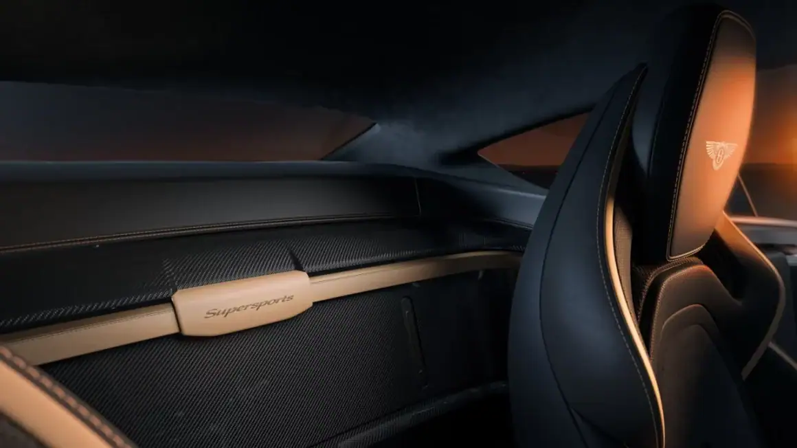 Mais plus de sièges arrière. Bentley les a jeté et a remplit l’espace de fibre de carbone et de cuir idéal pour un ou deux chiens de luxe. Pour tirer le meilleur parti de la perte de poids des Supersports, Bentley a recalibré les réglages de la direction, de la suspension, de la gestion de traction et du contrôle électronique de stabilité, qui peuvent être activés en totalité, mis en mode dynamique moins restrictif ou complètement désactivés.