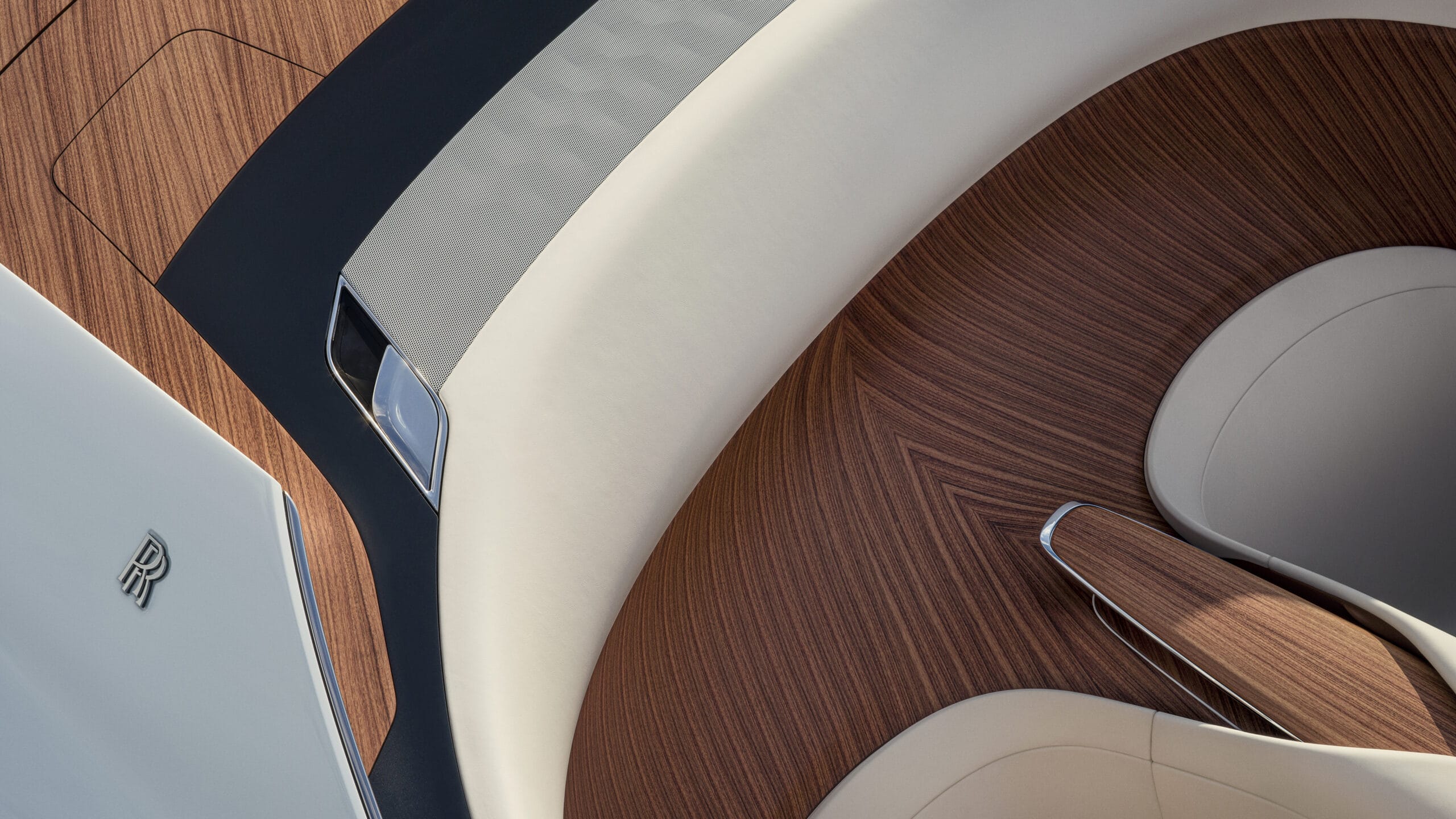 L’un des détails les plus attrayants de l’Arcadia est le bois utilisé sur la section du pont arrière de ce yacht routier et dans tout l’intérieur. Connu sous le nom de Santos Straight Grain, Rolls Royce affirme qu’il y a un total de 233 pièces de bois. Une laque protectrice a dû être développée pour le protéger pendant toute la durée présumée de vie du véhicule… L’ensemble de ce processus aurait pris 8.000 heures. Mais le travail a définitivement porté ses fruits, car le contraste est incroyable avec la peinture blanche brillante d’Arcadia’s, infusée de particules d’aluminium et de verre. Contrairement aux deux autres modèles Boat Tail avant Droptail, la Rose Noire et l’Amethyst, Rolls-Royce affirme que les sections inférieures de l’Arcadia sont peintes d’une couleur argentée unique plutôt que d’une fibre de carbone entièrement ou partiellement exposée.