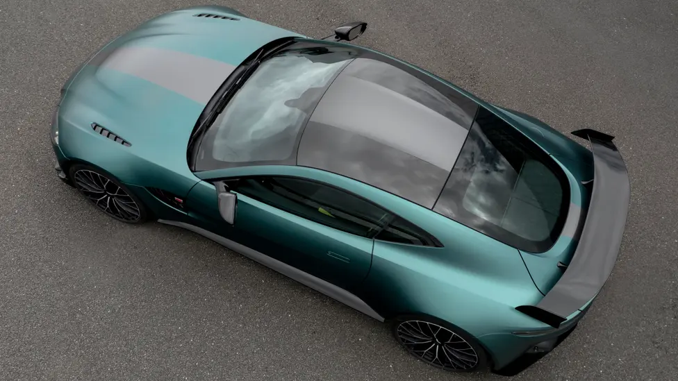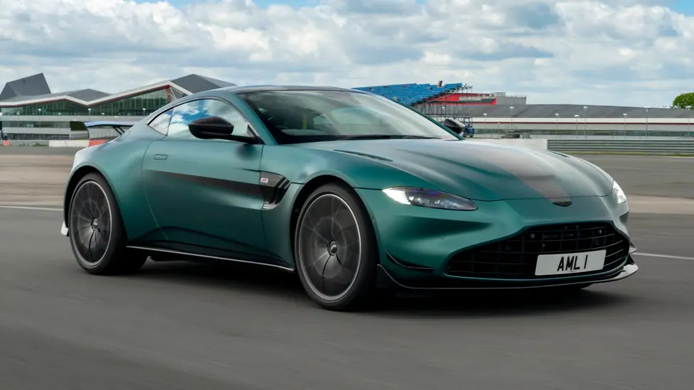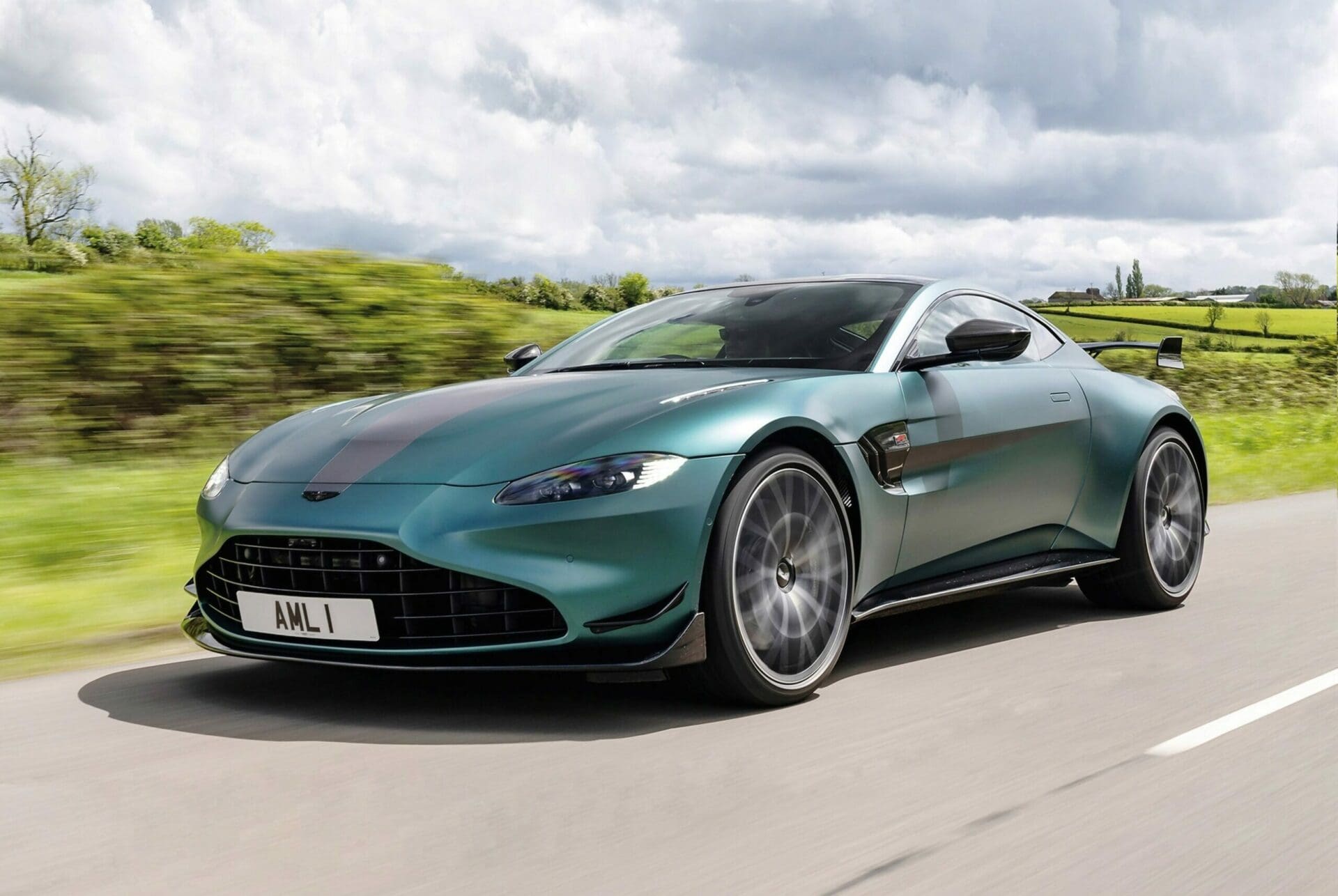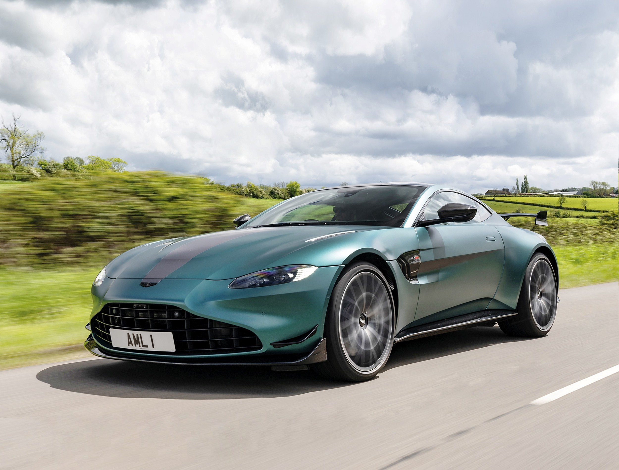 Les sièges sont fermes mais bien formés, mais le volant carré me dérange, il est trop grand et je n’aime tout simplement pas la sensation qu’il procure. Les jantes de 21 pouces emballent correctement les arches, améliorant la position de la voiture et ce racing green est la seule couleur à avoir sans avoir l’air d’un parvenu (seuls les autres choix sont jet black et lunar white). Je ne suis pas sûr de l’utilité de l’aileron arrière pas assez bien intégré. Je ne sais plus qui chez Aston m’a dit que c’est la première voiture de route à porter le logo officiel F1. Ce n’est toutefois pas un modèle à tirage limité que cette F1 Edition.
