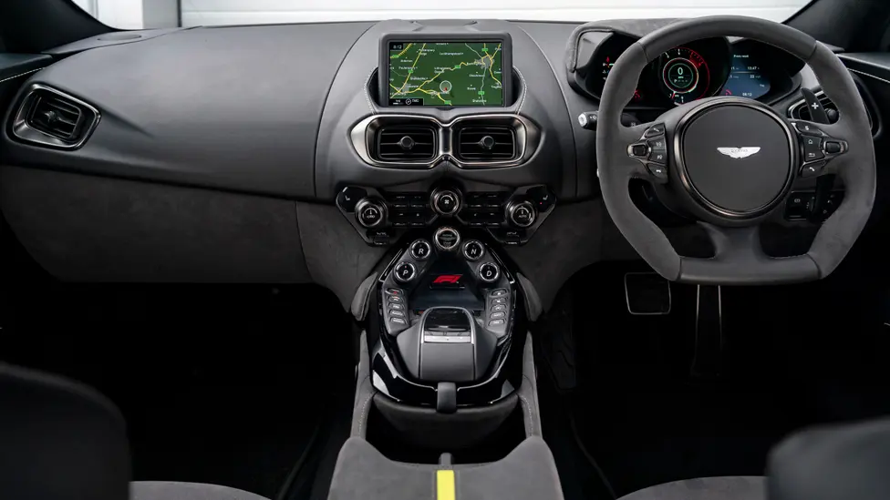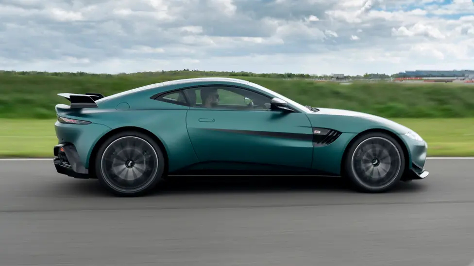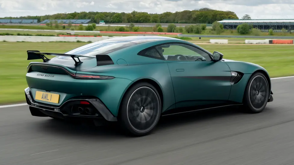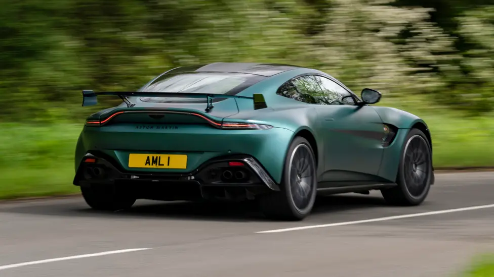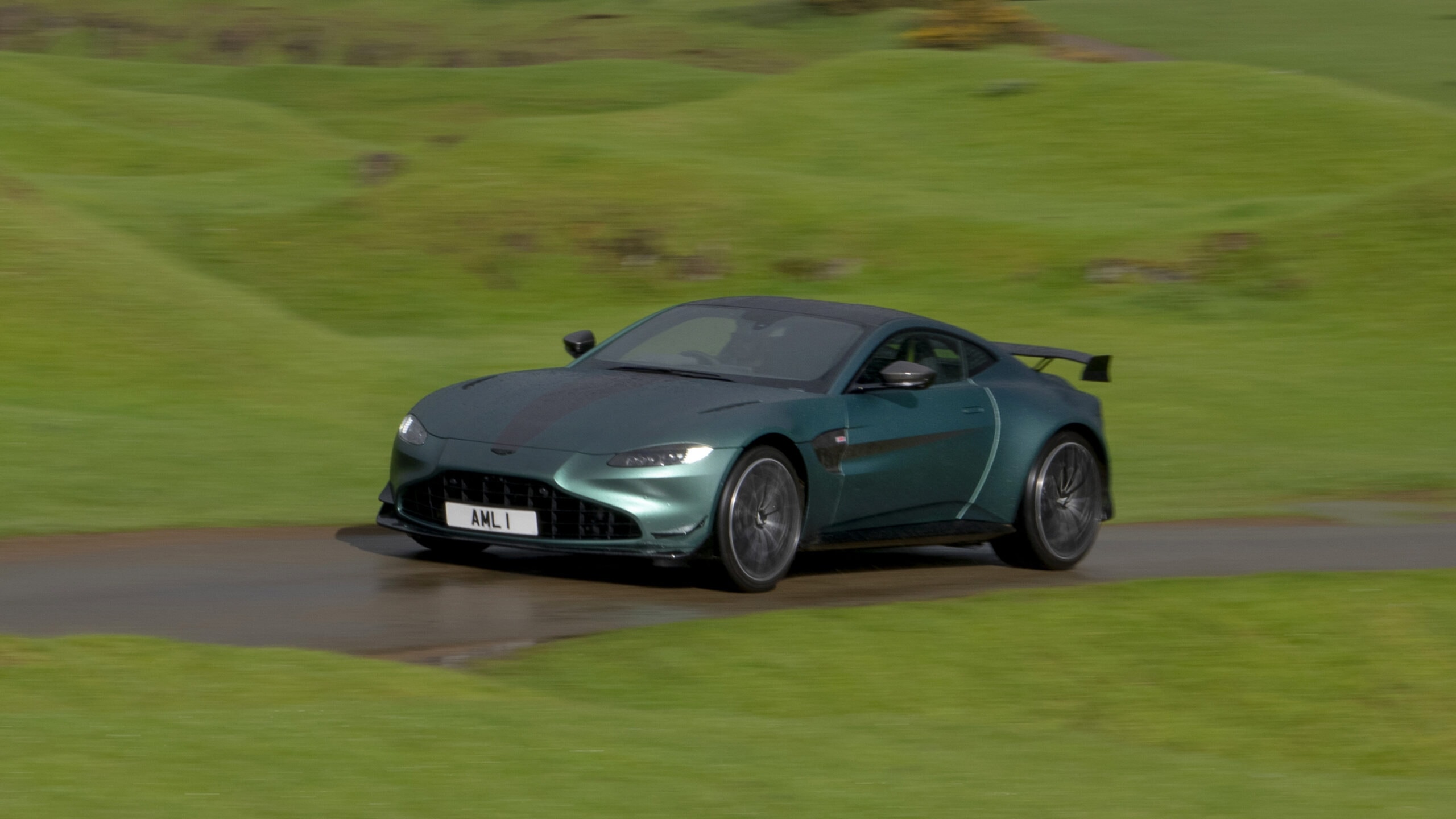 Maintenant les changements de vitesse sont plus transparents. C’est toujours une voiture à 8 vitesses cependant. Un peu plus de 500cv à 6.000 tr / min, renforcé par 505 lb pi de 2.000 à 5.000 tr / min. pour un poids à sec de 1.570 kg, ce qui donne un temps de 3,6 secondes de 0 à 62 mph. C’est un gros moteur amusant qui grogne. Pas aussi kick-ass et réactif que dans l’AMG GT R (où il a 577cv), mais l’Aston Vantage a une légère ambiance muscle car. Les dérapages sont superbes, ce qui, je le sais, ne devrait pas être pertinent, mais renforce à quel point l’arrière est prévisible maintenant.