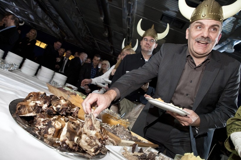 Le “Brennivin” est une boisson typiquement locale à base de poisson séché mélangé à de la vodka et du gin parfumé au cumin, appelée “La mort noire“…. Après ces ripailles, j’ai dû prendre le dessert, un pudding de foie de mouton et de poisson-chat séché dans lequel marinent des testicules saurs, d’une consistance de ris de veau d’un goût argileux et sûret. Autour de moi, les quelques rudes gaillards se sont mis à brailler en empoignant les filles de Thör, tout en chantant : “Il fait si froid dehors que notre sperme va geler dans nos bourses”…. Je vous l’avoue, c’était dégueu… L’attachée de presse de Koenigsegg avait également prévu une dégustation de produits locaux, et entre poissons et moutons on devait également boire du Brennivin ! On se saoulait grâââve ! L’attachée de presse m’a avoué que : “Les traditions se perdent car mis-à-part les journalistes-essayeurs et quelques touristes égarés, plus personne d’ici ne veut plus manger ce plat national“.