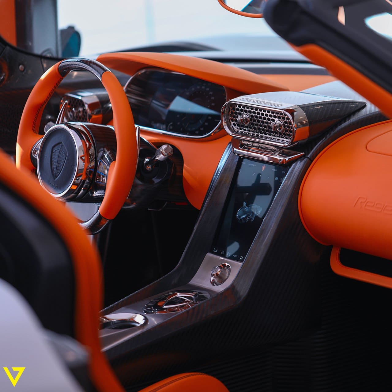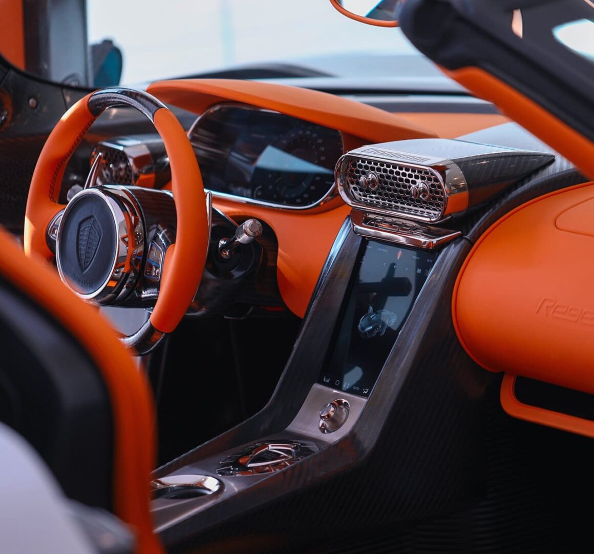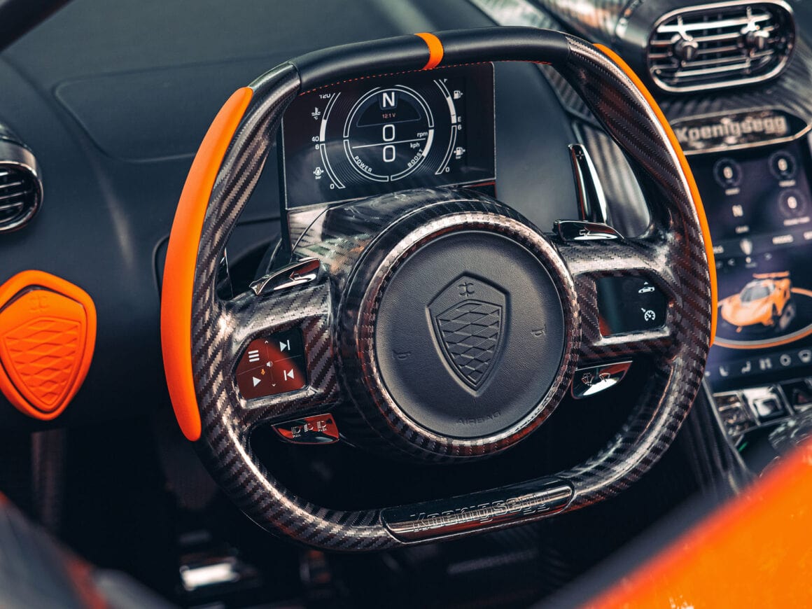 Dans l’habitacle, les rois de la tech et les influenceurs (qui ne sont ni acheteurs ni payeurs) découvriront de quoi influencer les internautes fauchés car c’est un cocon douillet. On y trouve la climatisation, une compatibilité Apple CarPlay et encore le chargement du téléphone. Le système Autoskin permet de contrôler à distance les portes et la suspension hydraulique. Petite spécificité de la version Absolut : le panneau de toit peut être logé dans le coffre. Sous le capot en coincé entre celui-ci et le V8 5,0 Litres biturbo délivrant 1600 chevaux pour un couple de 1500 Nm, sous réserve d’utiliser le biocarburant E85. Si vous n’avez pas ce type de carburant sous la main, vous n’aurez droit qu’à 1280 chevaux avec de l’essence SP95.