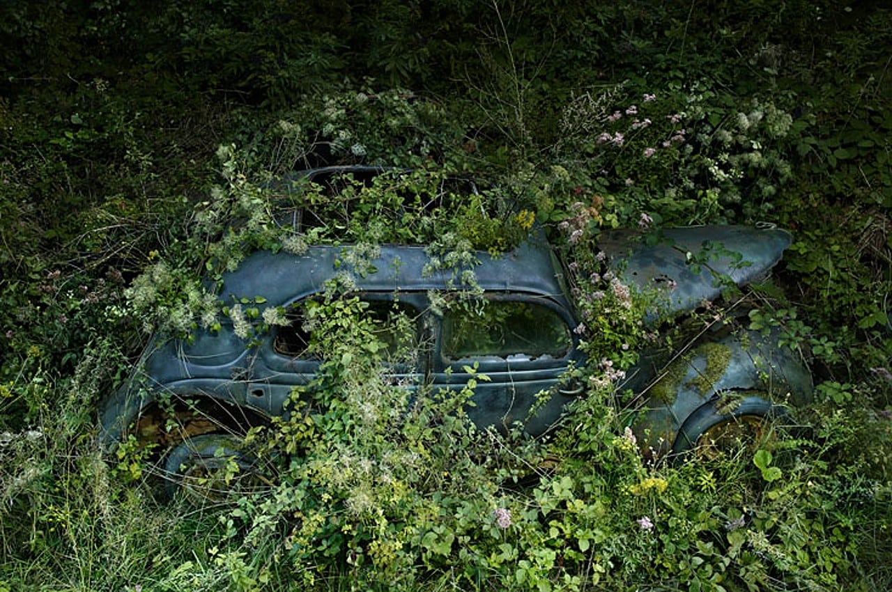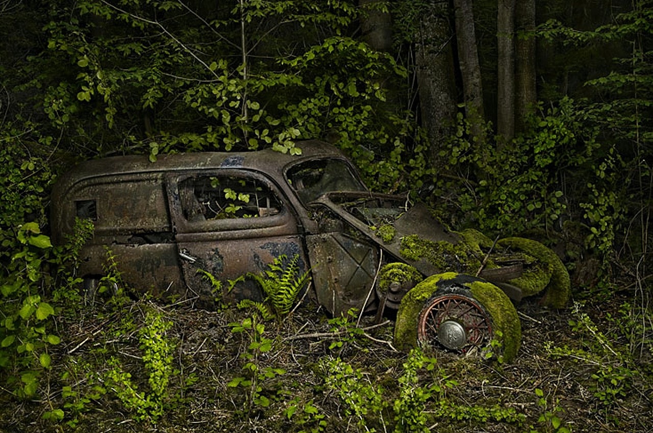 J’ai trouvé ce garage d’une beauté incomparable, sans doute parce qu’avant d’être un requiem au consumérisme automobile et à la spiritualité mécanique…, c’est une œuvre d’une esthétique qui occulte tout autre point de vue…, ce n’est quand même pas tout les jours qu’on voit un théâtre un peu absurde qui était le terrain de jeux d’hommes perdus, bercés entre l’humour et les larmes ! Certaines photos choquent (et on est loin de la Syrie pourtant) de part la tristesse qu’elles dégagen, c’est lorsque délaissé par les hommes avides d’argent que le garage explose dans un non-sens qui renvoie aux fondement de toute foi !