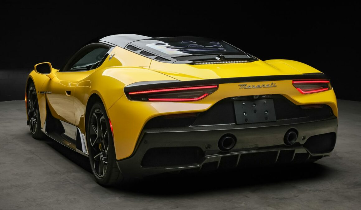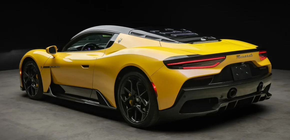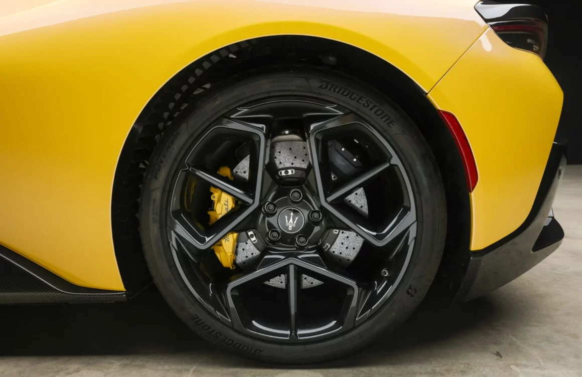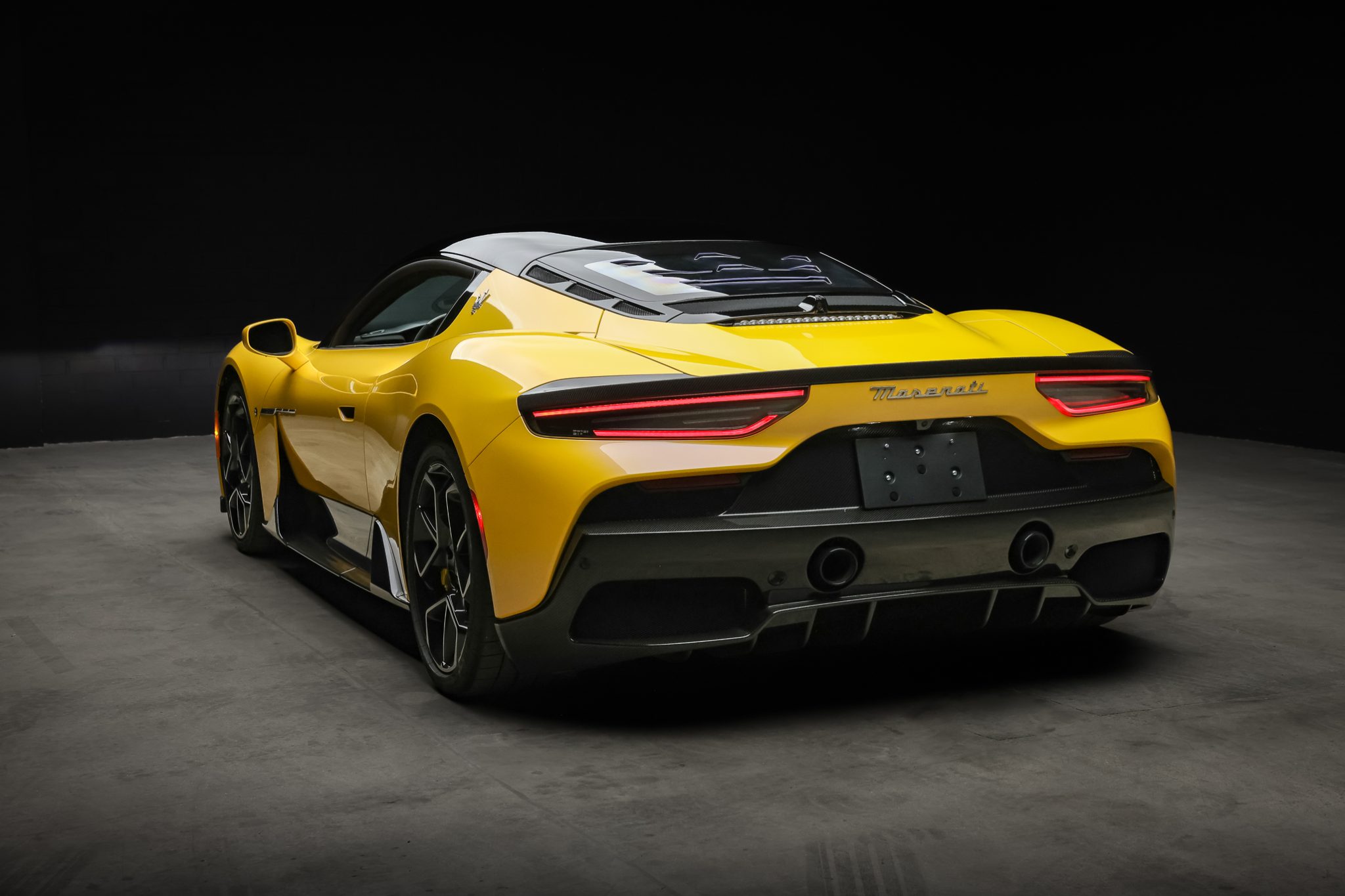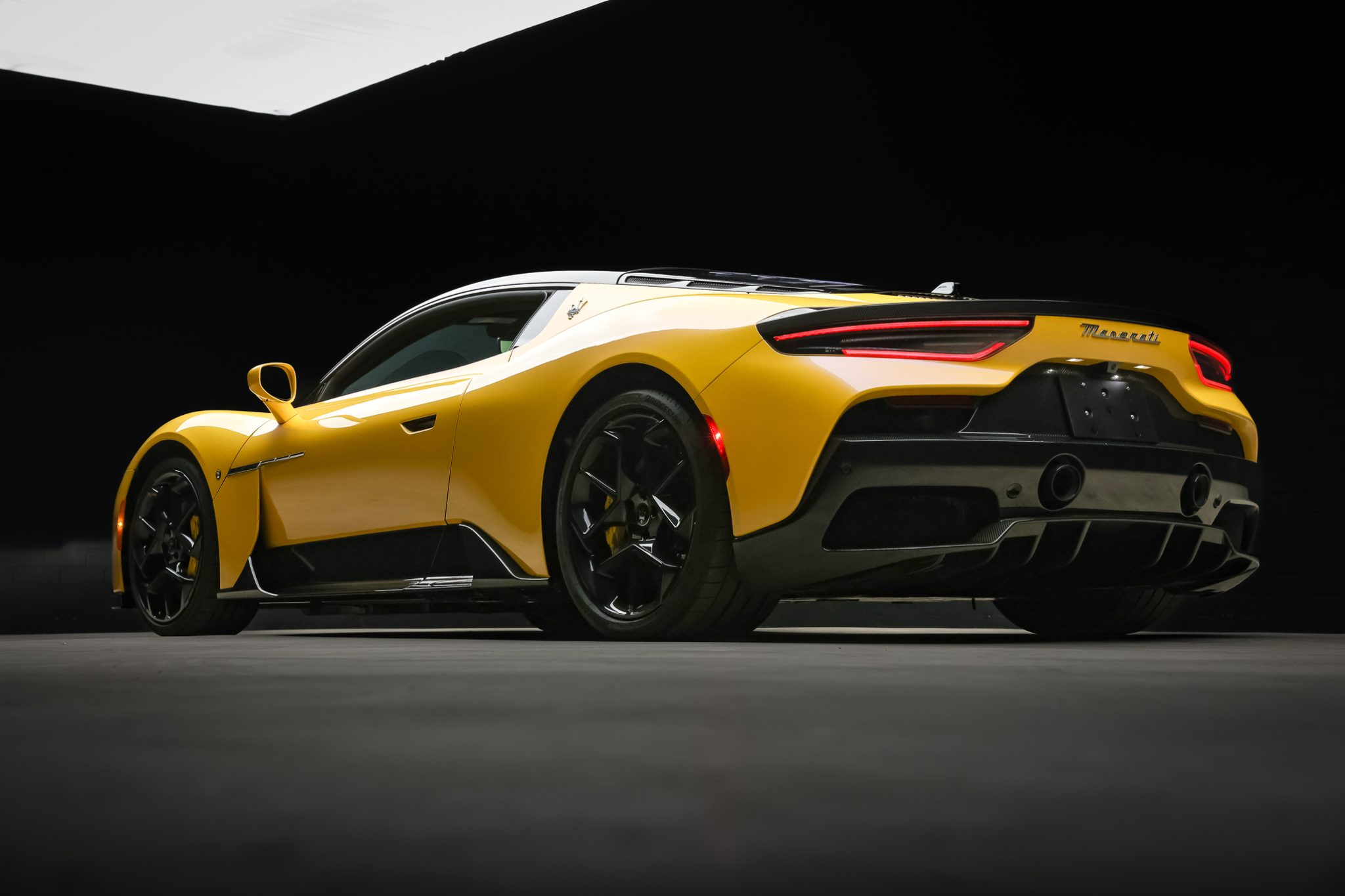 Les garnitures en fibre de carbone accentuent l’habitacle, et les équipements comprennent la climatisation automatique à deux zones, un rétroviseur numérique, une recharge sans fil. Le volant garni de fibre de carbone et d’Alcantara se trouve devant les palettes de changement de vitesse montées sur colonne et encadre un combiné d’instruments numériques de 10,25 pouces. Le V6 Nettuno à double turbocompresseur est doté d’un couvercle en fibre de carbone en option. Voilà, c’est fini…