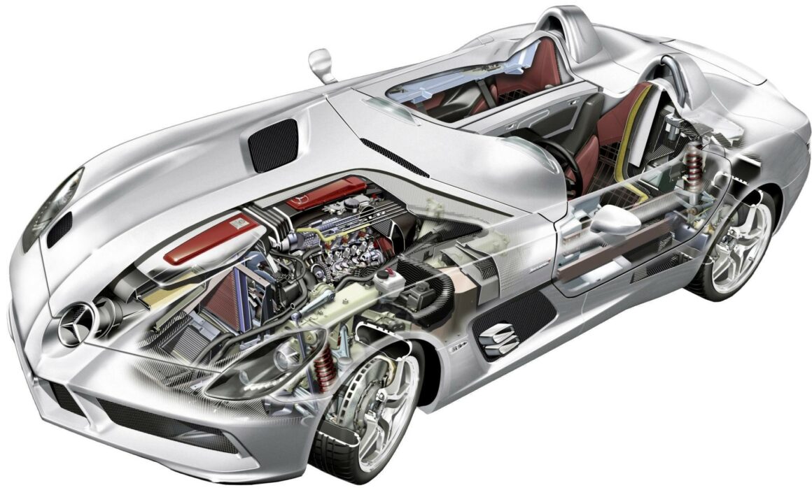 Vous ai-je écrit que le moteur suralimenté de 5,8 litres est bon pour 641chevaux à 6500 tr / min avec un énorme 605lb pi à 4000 t /min ? Non ? Sachez alors que lorsque vous devez ralentir, une feuille d’argent remplit le rétroviseur lorsque le frein à air apparaît. C’est une configuration de freinage violente conçue pour effacer la vitesse en un coup de pédale. Sur les routes sinueuses, la SLR Roadster standard offre toutefois une expérience de conduite intense.