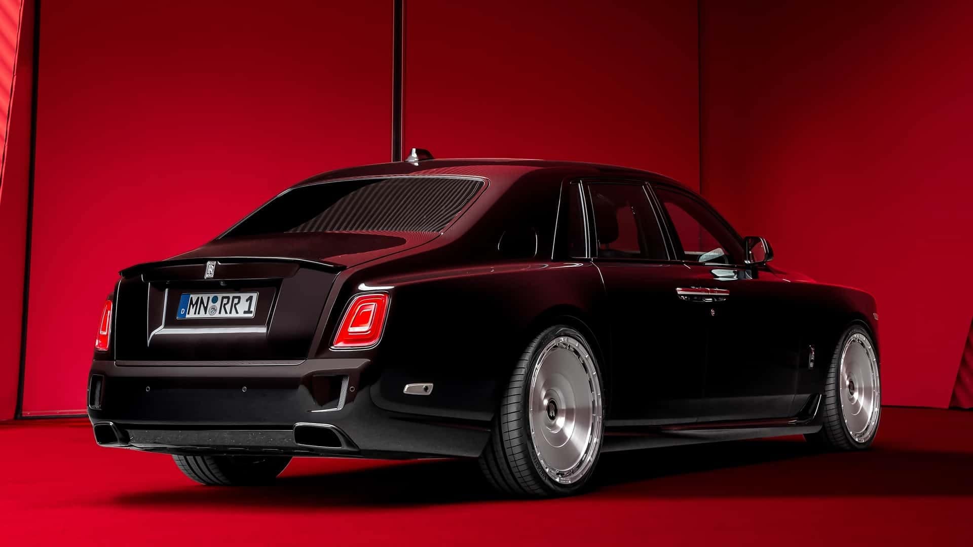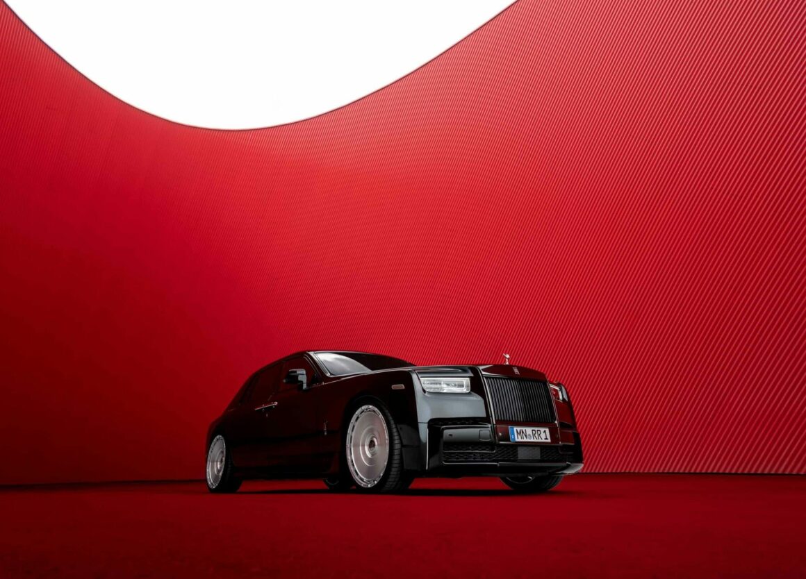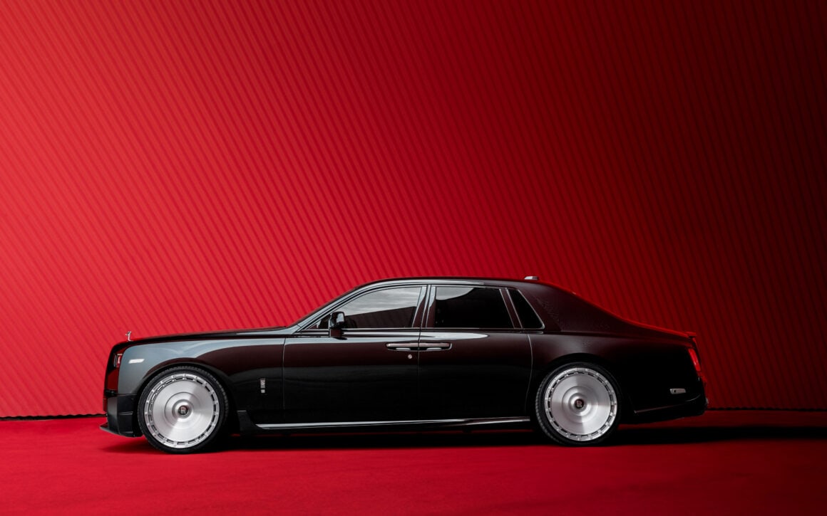 Des pneus haute performance 295/30 R 24 ornent les essieux avant et arrière. Les jantes SP3 sont disponibles dans toute une gamme de finitions, avec un choix de 72 couleurs et divers traitements de surface, y compris peints, polis ou brossés. Une telle diversité signifie que l’esthétique de la Phantom peut être adaptée aux goûts individuels de chaque propriétaire, repoussant les limites de la personnalisation !Mais la touche SPOFEC s’étend bien au-delà des jantes. Pour améliorer l’apparence et le confort, le réglage de la suspension est soumis à une mise à niveau significative. Un module de commande personnalisé pour la suspension pneumatique adaptative abaisse la hauteur de caisse de la voiture d’environ 40 millimètres jusqu’à une vitesse de 140 km/h, améliorant sa présence sur la route. Cependant, au-delà de cette vitesse, le véhicule revient automatiquement à son niveau d’origine, offrant un meilleur équilibre entre esthétique et performance. Le raffinement méticuleux de SPOFEC comprend en outre des pièces d’amélioration aérodynamique, toutes fabriquées en composite de carbone. Le carénage avant SPOFEC, intégré à un spoiler, remplace le pare-chocs standard, donnant à la Phantom un visage plus audacieux.