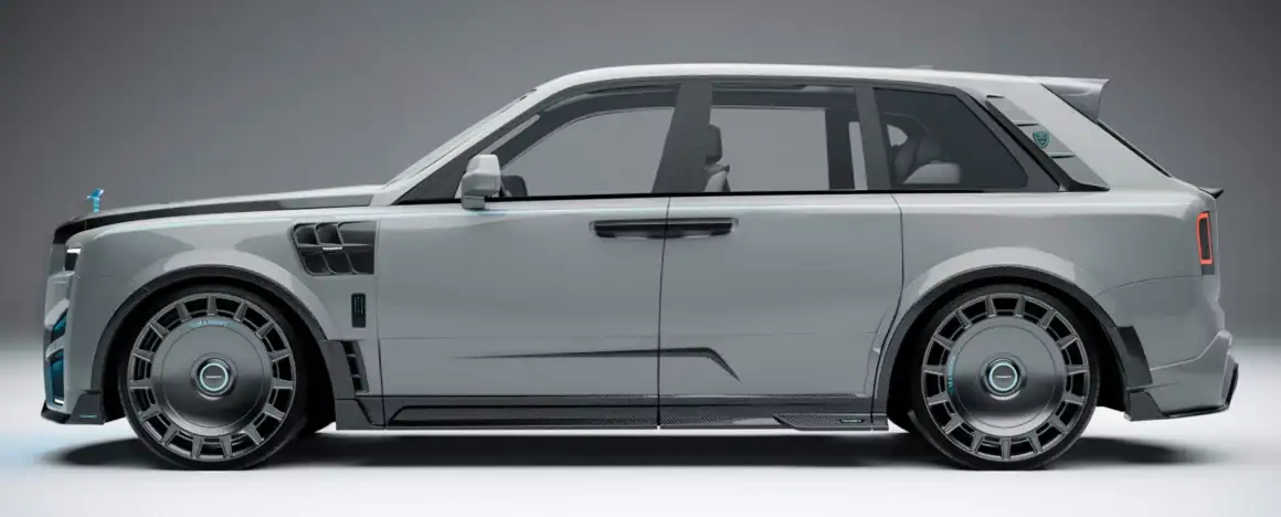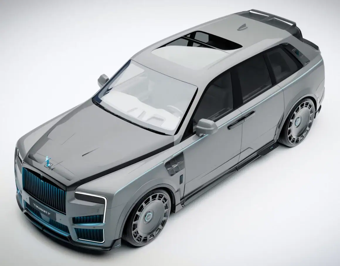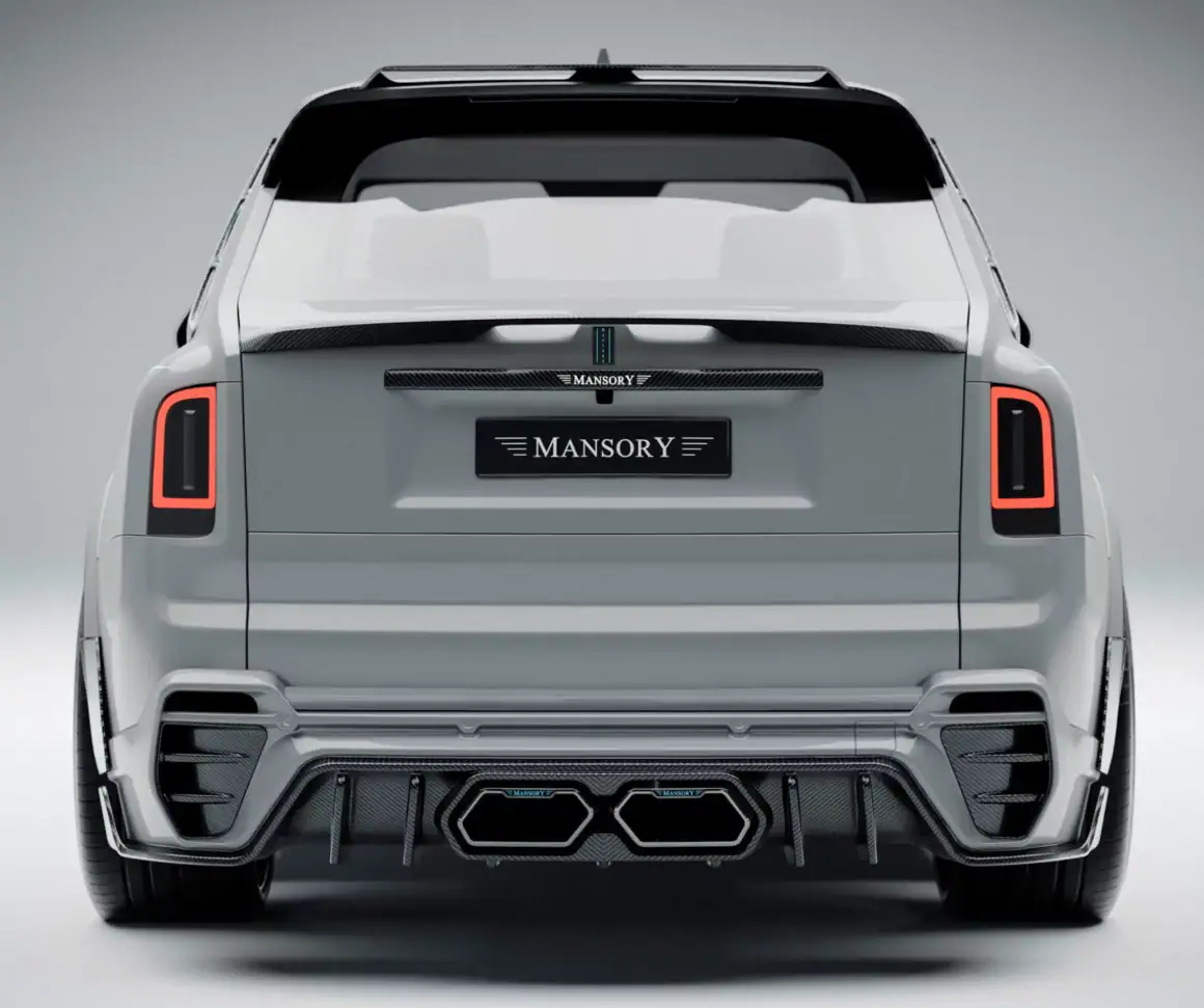C’est un très gros et lourd bijou de plus d’un million d’euros ou dollars que divers qualifient de “vulgaire verroterie”... Quoi qu’il en puisse être c’est fidèle à son habitude, Mansory y déploie une palanquée de “Carbone forgé”... Ce qui se voit le plus, outre le carbone qui est partout, c’est l’ajout de grilles sur toute la face avant. Comme si la seule grille de la calandre Rolls Royce n’était pas déjà suffisante en elle-même. Selon Mansory, sa version Rolls Royce Cullinan a été affinée niveau aérodynamisme (si si !) via des pièces redessinées sur les flancs, les bas de caisse, et même le spoiler arrière. C’est Kitchissime façon des années Tuning. Les grilles ajoutées à l’avant cachent des entrées d’air augmentées en taille, car il est nécessaire refroidir et alimenter en air le moteur qui a été poussé en puissance pour en augmenter les performances. Les ingénieurs du préparateur ont modifié la partie électronique avec une “Mansory PowerBox”. L’échappement a également été remplacé par une ligne “hautes-performances” disposant d’une valve pour déranger les voisins. Si la version Mansory de la Cullinan n’est pas assez bling-bling, Mansory propose une variété de Kits et Accessoires hors de prix, version “Faites-le à votre (mauvais) goût”…