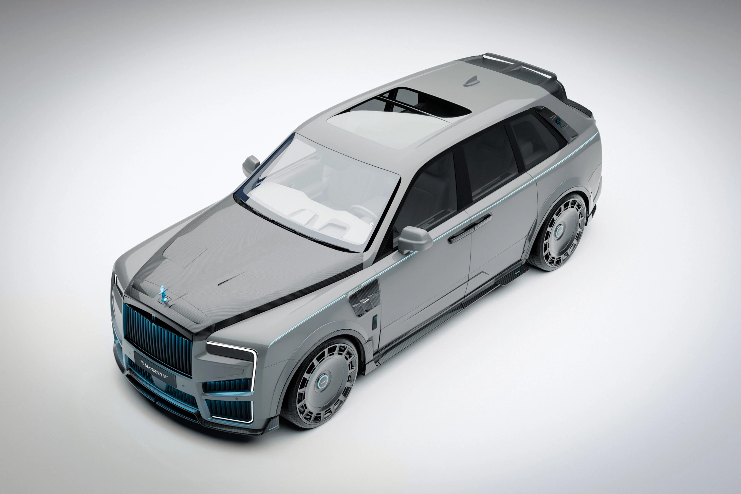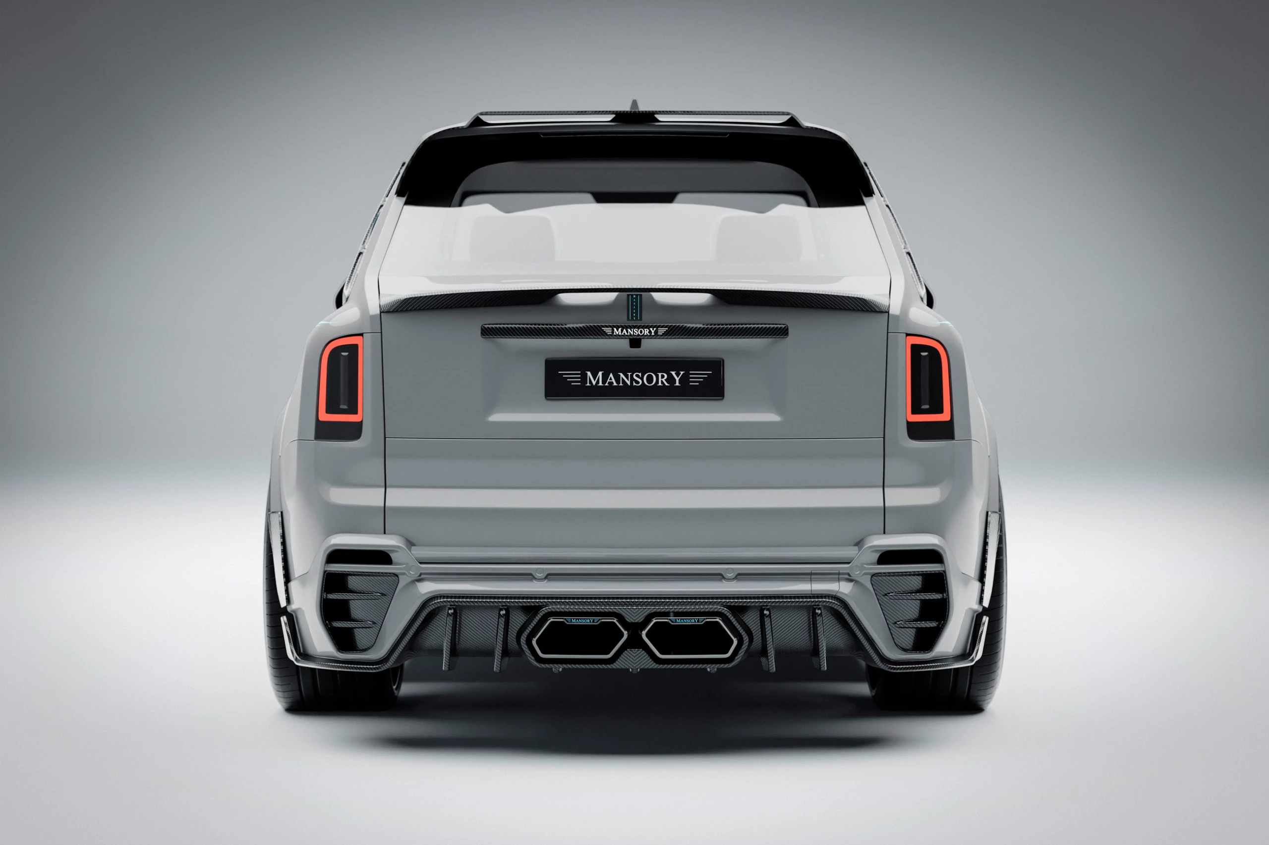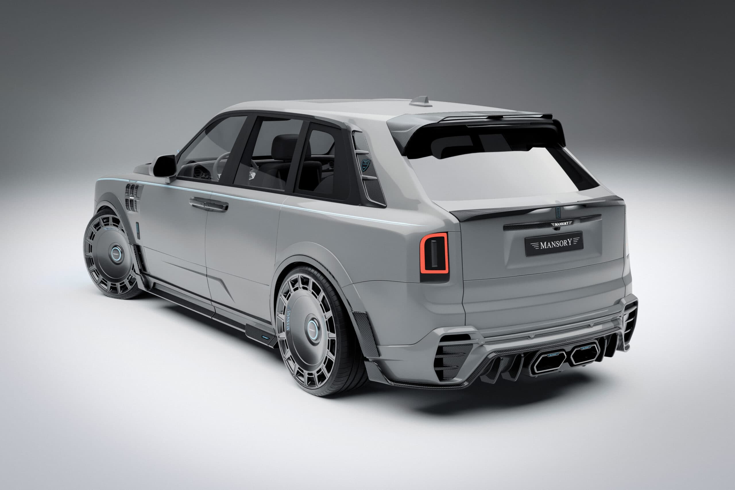 C’est un très gros et lourd bijou de plus d’un million d’euros ou dollars que divers qualifient de “vulgaire verroterie”... Quoi qu’il en puisse être c’est fidèle à son habitude, Mansory y déploie une palanquée de “Carbone forgé”... Ce qui se voit le plus, outre le carbone qui est partout, c’est l’ajout de grilles sur toute la face avant. Comme si la seule grille de la calandre Rolls Royce n’était pas déjà suffisante en elle-même. Selon Mansory, sa version Rolls Royce Cullinan a été affinée niveau aérodynamisme (si si !) via des pièces redessinées sur les flancs, les bas de caisse, et même le spoiler arrière. C’est Kitchissime façon des années Tuning. Les grilles ajoutées à l’avant cachent des entrées d’air augmentées en taille, car il est nécessaire refroidir et alimenter en air le moteur qui a été poussé en puissance pour en augmenter les performances. Les ingénieurs du préparateur ont modifié la partie électronique avec une “Mansory PowerBox”. L’échappement a également été remplacé par une ligne “hautes-performances” disposant d’une valve pour déranger les voisins. Si la version Mansory de la Cullinan n’est pas assez bling-bling, Mansory propose une variété de Kits et Accessoires hors de prix, version “Faites-le à votre (mauvais) goût”…