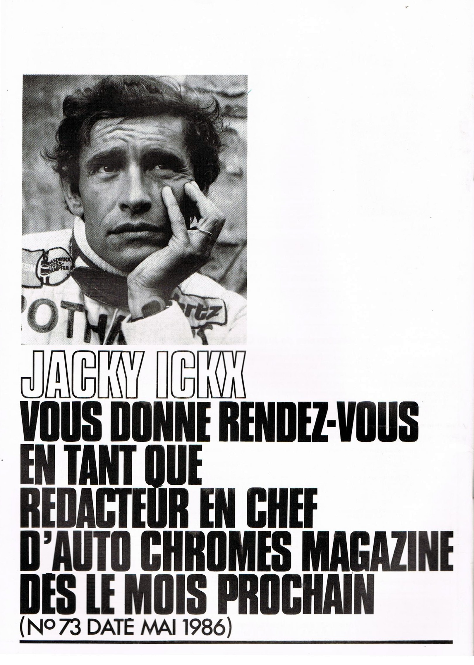 C’était pour ne pas saborder/couler mes magazines. Les articles de Jacky étaient en effet aussi indigestes à lire que du Bellu… Jacky, en plus d’un salaire de premier ministre, conservait les voitures de presse (des Porsche et surtout des BMW), que la rédaction n’avait que deux heures pour en réaliser un “test” et une séance photo pendant que Jacky dinait sur mon compte, puis disparaissait avec “sa” voiture qu’il décidait être pour son usage perso… Après 5 numéros je lui ai dit que c’était terminé… Dispute et arrangement “à l’amiable”! Je pense être le seul à avoir viré Jacky Ickx… Il vit maintenant à Monaco, on s’ignore…