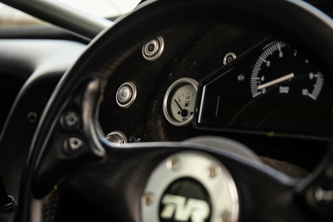 Pas de commodo pour les essuie-glaces ni pour l’allumage des feux puisqu’à la place se trouvaient des boutons situés sur le volant. Le seul commodo présent concernait les clignotants, et il se trouvait à l’opposé des habitudes, à droite. TVR était donc précurseur dans le domaine et Ferrari semblait s’en être inspiré pour sa 458 Italia. Le coffre généreux était un atout supplémentaire. En 2000, la Cerbera subit un restylage. C’est l’avant qui fut le plus modifié avec l’adoption de deux optiques séparées, dans le même esprit que ceux de la Tuscan. Les 4.5 eurent même droit à une cure d’amincissement !