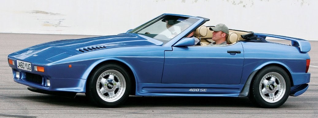Les pontifes de TVR visaient prendre le relais de la Triumph TVR, récemment retirée du marché. Cependant, avec seulement 110cv, elle ne parvint pas à séduire un large public, seulement 61 exemplaires trouvèrent preneurs, contre 1.167 pour les V6 Ford. La Tasmin/280i a été continuellement révisée tout au long de son existence, grâce à de nombreuses pièces provenant de constructeurs tels que Ford, Rover, Triumph, Jaguar et même Renault. Le modèle Série II de 1981 a bénéficié de modifications majeures au niveau du style et de la suspension avant, ainsi que de l’introduction d’une version cabriolet. En 1982, Peter Wheeler était à la recherche d’un peu plus de puissance : le V6 de Cologne pouvait propulser la Tasmin/280i à 60 mph en 8 secondes, mais avec la guerre croissante des chevaux entre l’Allemagne et l’Italie, la référence pour les voitures de sport devenait encore plus basse. Il y avait un problème avec le fournisseur habituel. TVR avait bien réussi au Moyen-Orient, qui s’opposait aux liens étroits de Ford avec Israël. Wheeler s’est donc tourné vers Rover pour son V8 d’origine Buick. Le moteur de 3,5 litres développait 197cv, une puissance considérable disait-on alors (gag !) pour une voiture de seulement 1000kg.