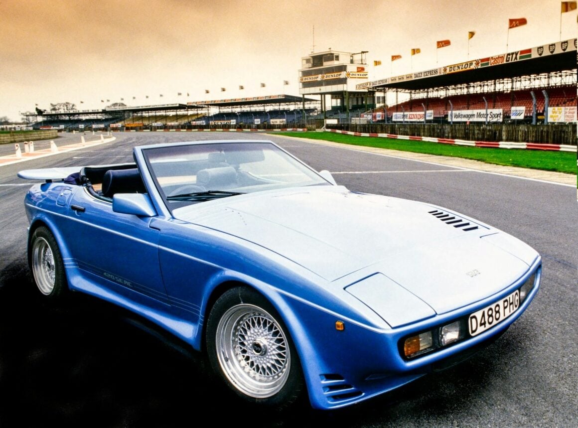 Le gouvernement fédéral américain en raison de problèmes d’émissions refusait toute homologation. Comme TVR disposait de très peu d’argent pour y remédier, les Tasmin’s ont été bradées comme engins non imatriculables… Le profil en coin était pourtant très ancré dans cette époque et son modernisme était sensé lui conférer une certaine élégance. Si la TVR eut été italienne, le monde aurait probablement été impressionné. Cependant, malgré l’enthousiasme suscité par son châssis et sa maniabilité, son style s’est avéré un frein autobloquant et les ventes sans homologation ont été très faibles. La récession britannique n’a pas aidé à espérer un miracle. Moins d’un an plus tard, l’entreprise a été vendue à Peter Wheeler, un passionné rétrograde. Construite autour d’un châssis tubulaire, la transmission et la suspension des TVR Tasmin’s provenaient en grande partie de Ford. Ce qui a permis par un tour de passe passe à obtenir une homologation petite série Ford… La Tasmin/280i proposait initialement un V6 Ford de 160cv. En 1981, la version économique équipée du moteur Ford Pinto de 2,0 litres fut acceptée pour immatriculation en petite série “Kit Car” proposée pour le marché américain…