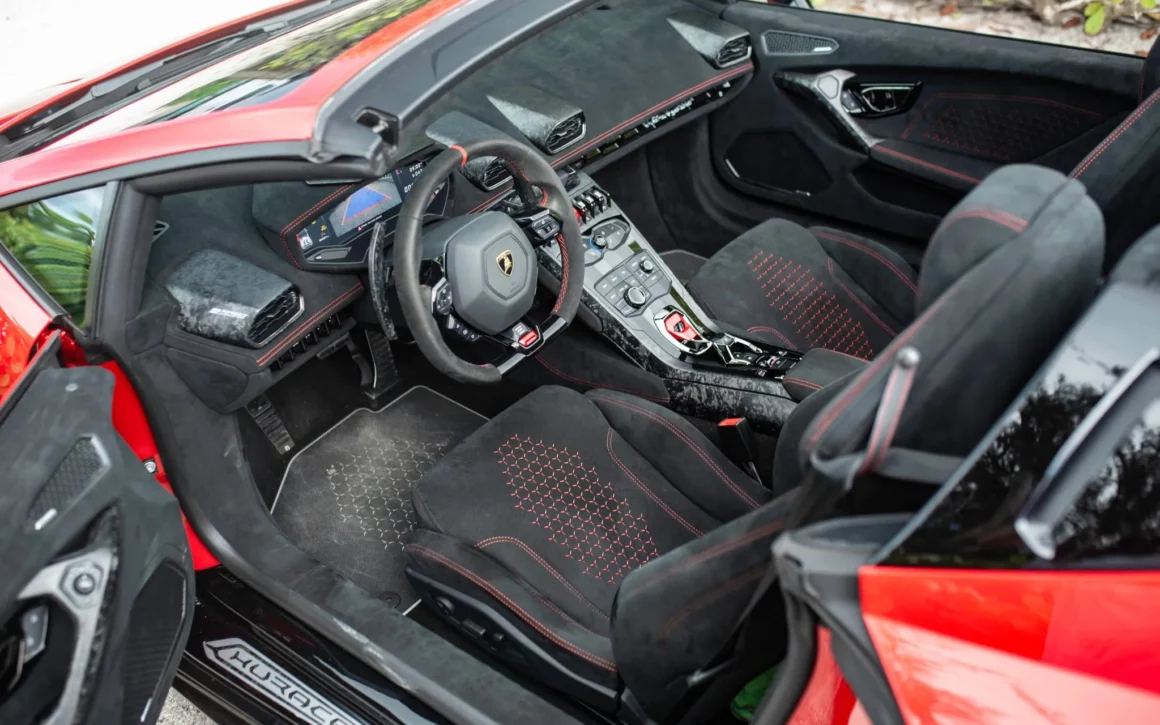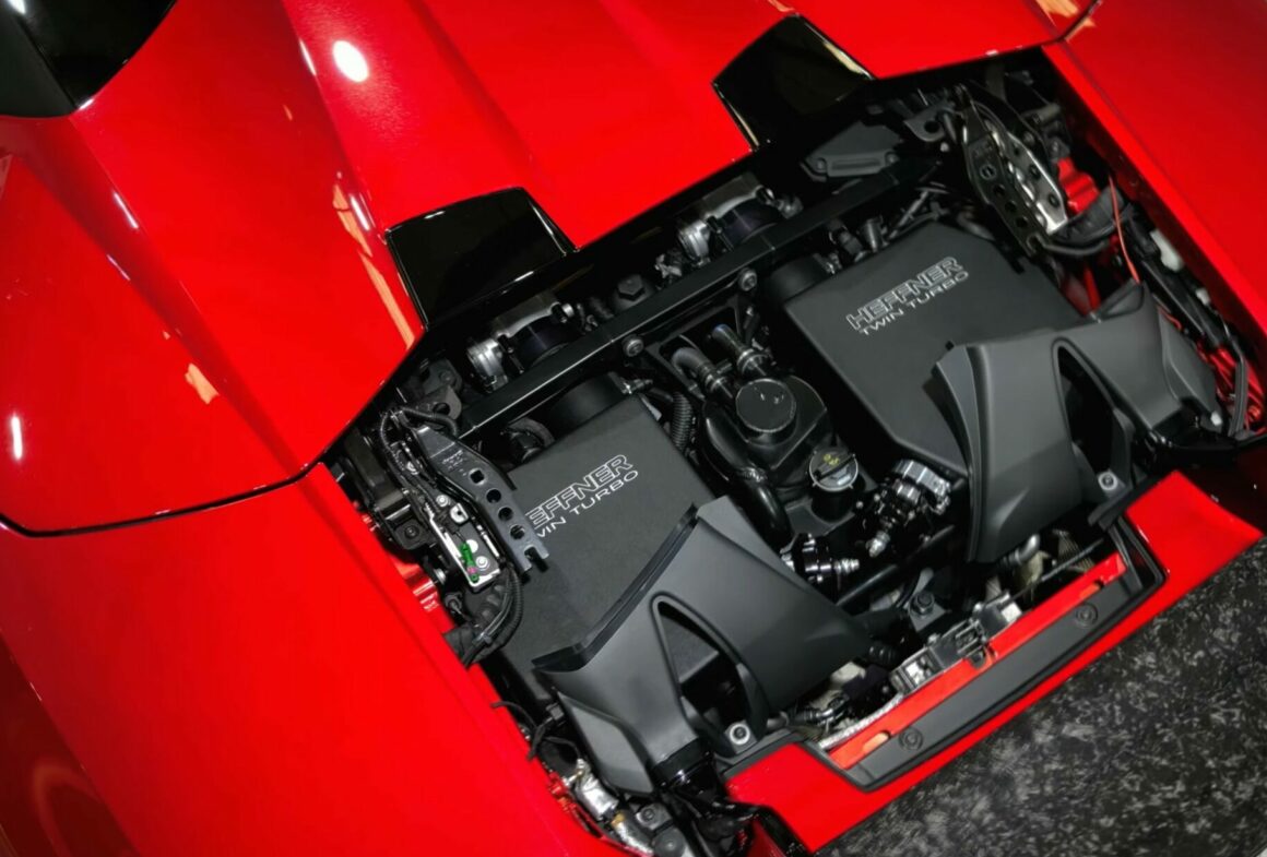 Ce n’est pas tout, il y a aussi un ECU autonome MoTec, un kit d’embrayage Dodson motorsports et un refroidisseur intermédiaire et une tuyauterie d’échappement en acier inoxydable. Dotée d’une finition Rosso Bia avec une capote noire sur une sellerie en Alcantara Nero Cosmus, la voiture a été équipée en usine des ensembles Style, Branding et Laser-Engraved ainsi que d’un système de levage de véhicule…