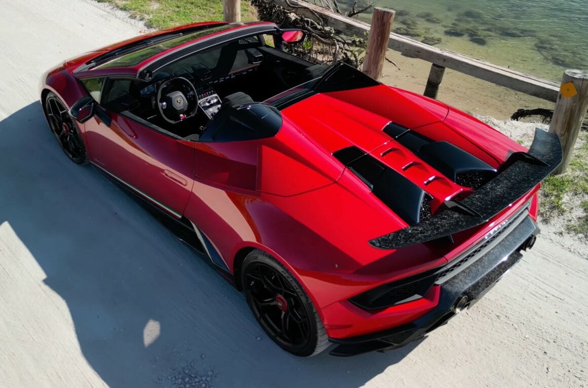 La Spyder est légèrement plus lente que le Coupé, et le magnifique moteur central n’est pas exposé sous un morceau de verre pour que vous puissiez l’admirer comme c’est le cas dans le coupé. Mais, principalement grâce à une exposition sonore plus intensifiée, on peut se sentir plus connecté à l’expérience de conduite. Mais la Performante a été remplacée par la nouvelle Huracan EVO…