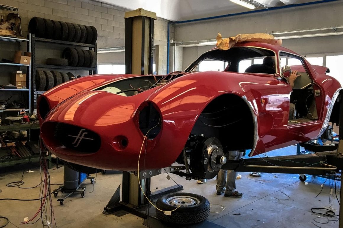 Quelques temps auparavant, Zagato avait réinventé l’Alfa Romeo 1750 Zagato, une copie caricaturée façon “Grand carrossier italien” en aluminium, de l’extraordinaire 1750 Alfa des années trente (photo ci-dessous de la chaine d’assemblage).