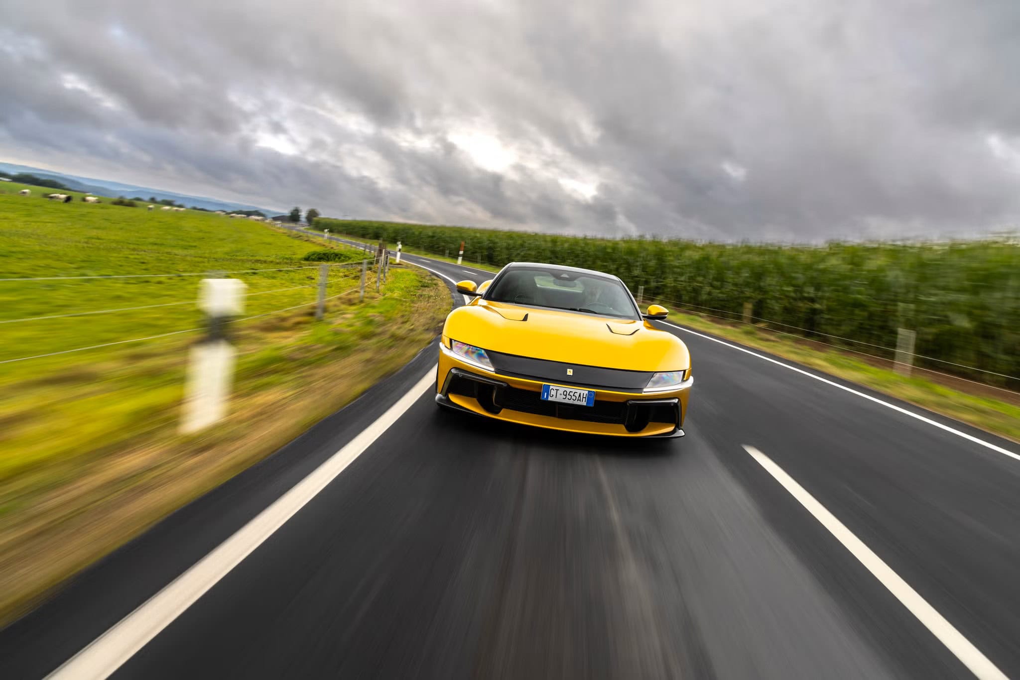 Les changements de vitesse sont rapides mais fluides dans les modes orientés route mais donnent à la voiture une claque ferme à l’arrière pour la précipiter et poursuivre son chemin. Les véhicules électriques n’ont peut-être pas besoin de la magie multiplicatrice de couple des engrenages, mais ils sont moins engageants parce qu’ils ne les ont pas. Cela ne veut pas dire que la 12 Cilindri, ou toute autre Ferrari moderne, est en quelque sorte pure ou analogique. Ferrari apporte autant ou plus d’un barrage d’acronymes représentant n’importe quel nombre de systèmes de contrôle électronique du châssis. Le contrôle de l’angle de glissement (version 8.0, si vous vous posez la question) intègre les systèmes de direction, de traction, d’ABS et de suspension. Cela semble être une idée cool à première vue. Comment une telle intervention et une telle modification en coulisse pourraient-elles ne pas aboutir à un véhicule artificiel ?