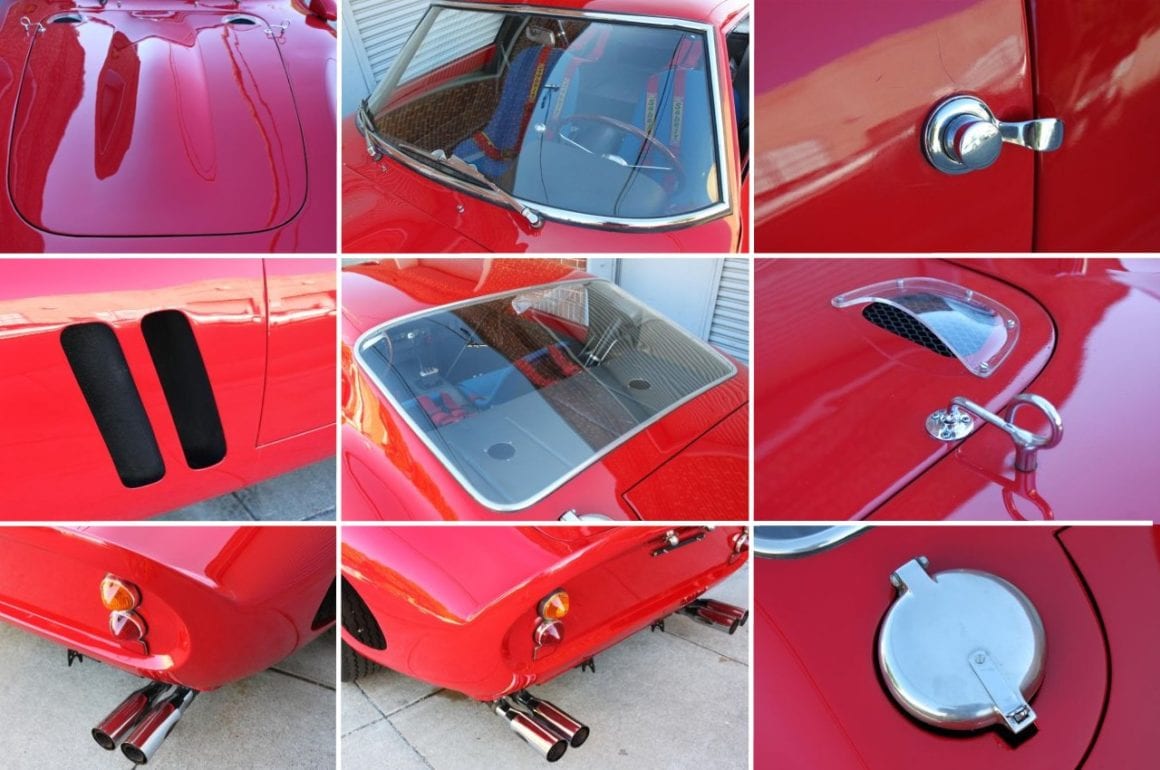 Non content de les construire en aluminium, sur un châssis 250GT, d’un moteur 3-litres à six carbus aux normes GTO… et de fournir en fin de compte des voitures nettement mieux faites que celles d’il y avait vingt ans d’alors, il les livrait avec des papiers “en ordre”, dont une carte grise de 250, de 330 ou de Lusso qui étaient les voitures dont le châssis servait de base à ses répliques.