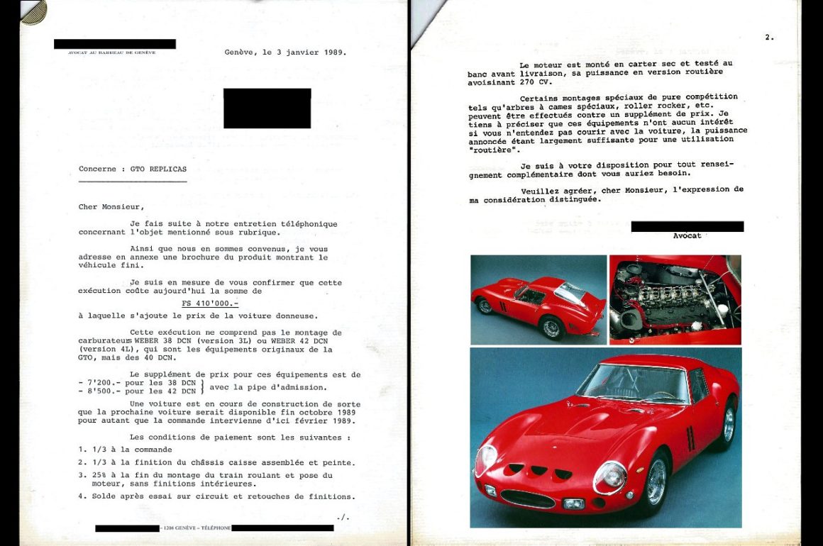 Son projet de commercialiser une vraie-/fausse/GTO mettait donc, pour Ferrari, la commercialisation du mythe GTO (via la 288 GTO) en péril !