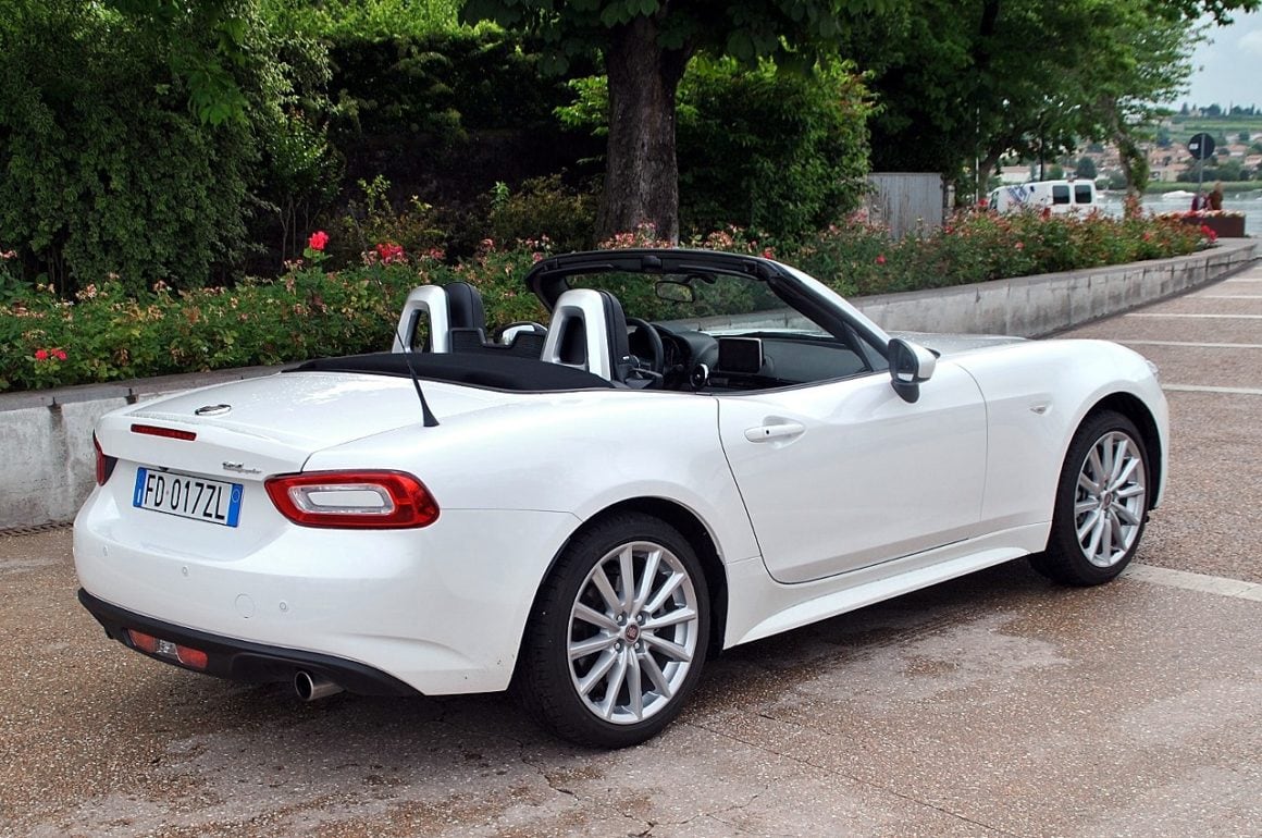 Pour le reste, il faut donc se contenter d’une Abarth 500 C Competizione 595 de 180 chevaux (ça déménage, ça fait constamment vroom, vroom, il faut aimer), l’antique Caterham Super Seven 7 de 80 chevaux (un peu juste pour s’amuser mais tellement légère), la Smart Brabus cabrio de 110 chevaux (ça ne va pas faire plaisir à mon rédac-chef mais ça reste toujours un tape-cul surtout en version Brabus)… (Note N°1 du Rédac-chef : il s’en f…) et enfin deux versions qui me semblent enfin sortir du lot : la Fiat 124 Spider de 140 chevaux étroitement dérivée de la Mazda MX-5 de 131 chevaux.