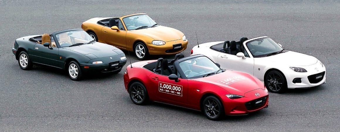 1989, salon de Chicago, Mazda dévoile un adorable petit roadster du nom de Miata…, près de trois décennies plus tard et avec plus d’un million d’unités au compteur, la MX-5 se profile toujours comme une «voiture passion “pour ses deux occupants”…, avec en prime une incroyable fiabilité pour pas (trop) cher !