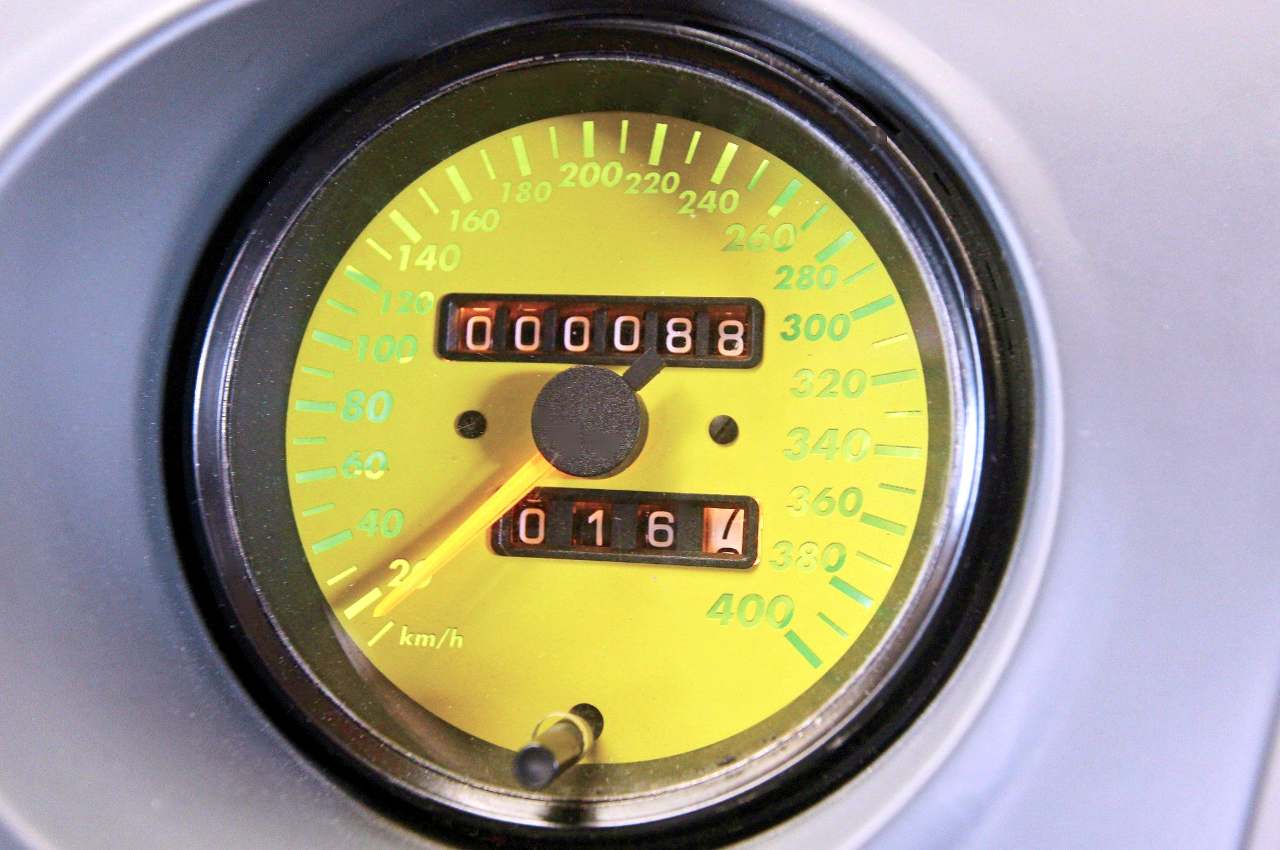 J’ai un oeil rivé dans le pare-brise et l’autre dans le compte-tours gradué jusque 7000… et je constate que le compteur de vitesse est calibré jusque 400 km/h : “Essayez-le au max, si vous l’osez”, rugit Léonardo, excité comme un fauve : “Elle peut grimper sans peine à 300 km/h, courage”…