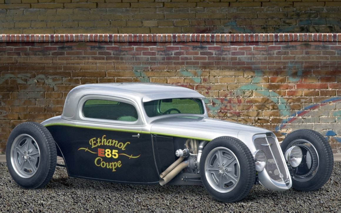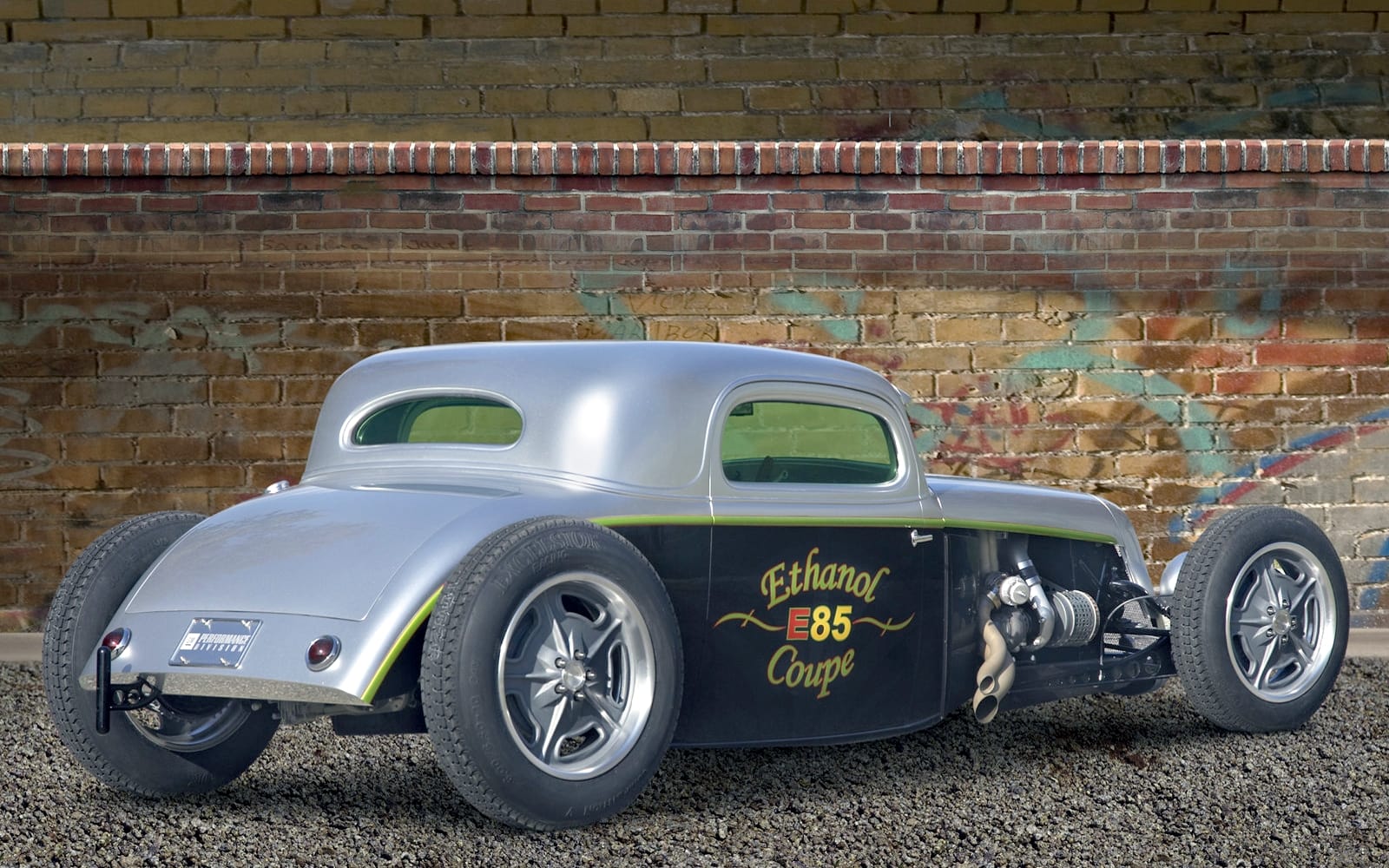 With a 500-horsepower engine, a channeled body and a chopped top, GM’s custom street rod looks right at home on the salt flats of Bonneville. But instead of a traditional gasoline V-8, this ’34 Chevy replica rod sports a turbocharged 2.0L Ecotec engine that runs on E85 ethanol. Appropriately, it has been dubbed the FlexFuel Chevy Hot Rod.
