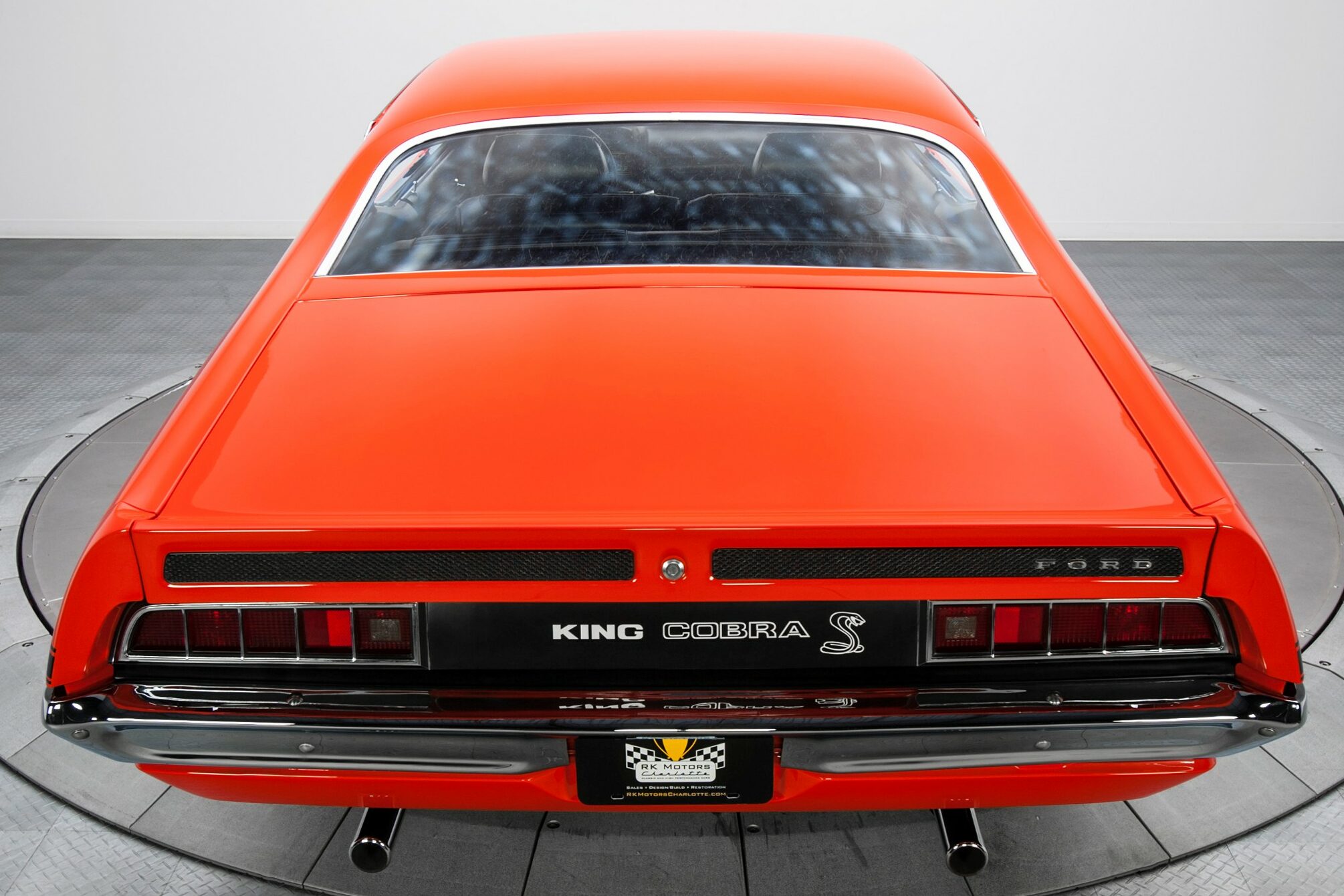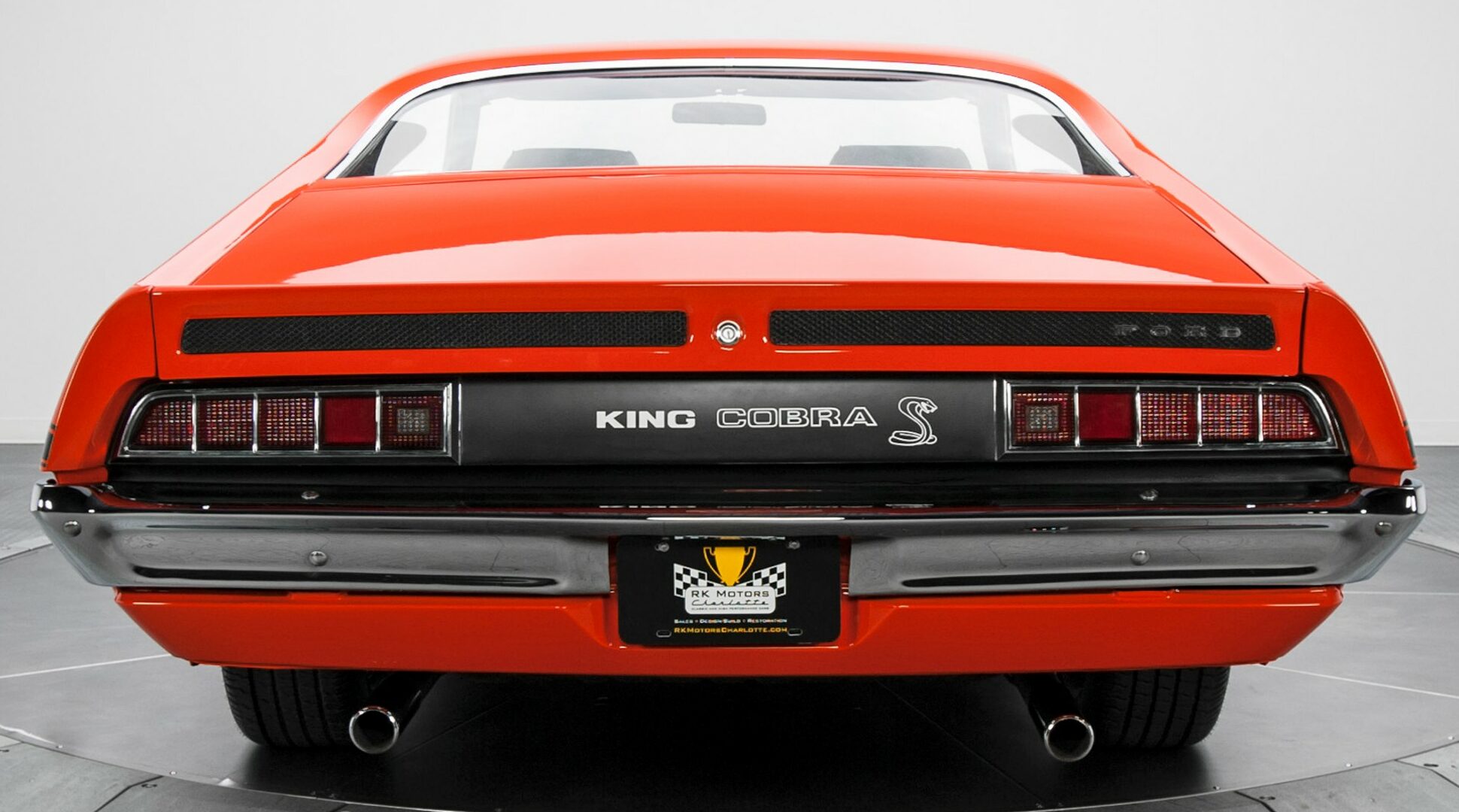 C’est RK Motors, garage spécialisé en voitures de dingues, qui l’a obtenue en dépôt/vente et l’a immédiatement annoncée à 600.000 US$… Lors de la vente aux enchères de Mecum à Kissimmee des 3 au 13 janvier 2021, l’autre Ford Torino King Cobra, appartenant à Bud Moore, avait été vendue 525.000 US$. Faits saillants concernant la Ford Torino King Cobra V8 Boss 429… 1° C’est une des deuc Torino King-Cobra livrées à Bud Moore Engineering… 2° Les 3 ont été conçues par Larry Shinoda… 3° C’est la seule Torino King Cobra des 3 fabriquées motorisée d’origine d’un Big Block V8 Boss 429 et d’une boite manuelle 4 rapports, ce qui signifie que le profit réalisé allait être considérable !!!