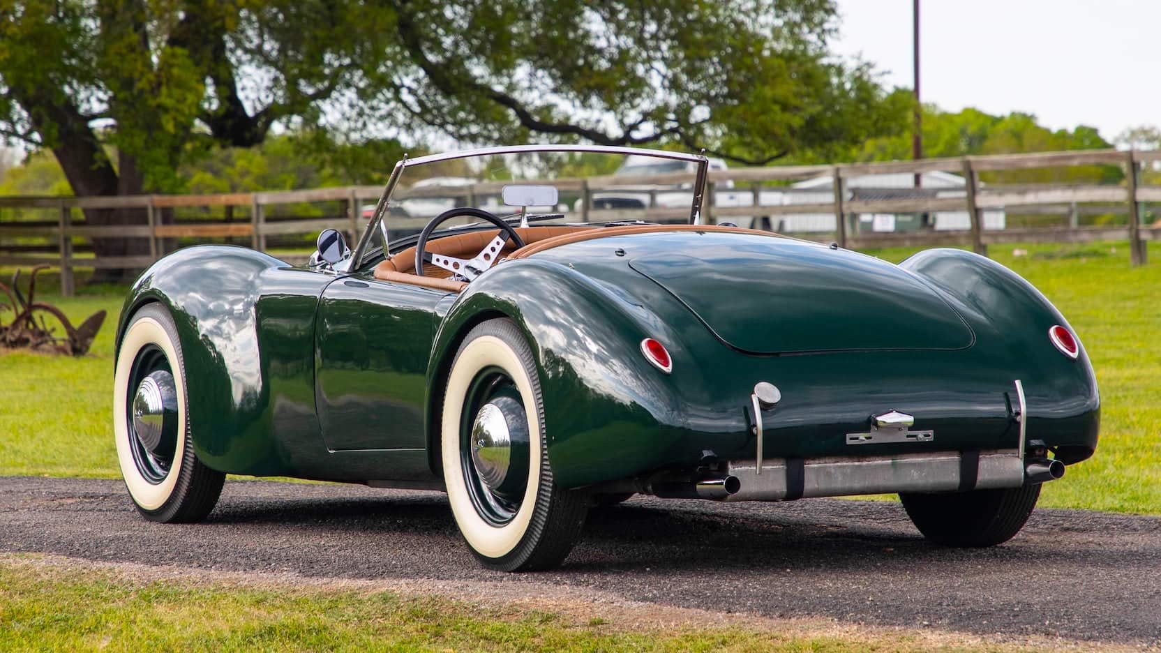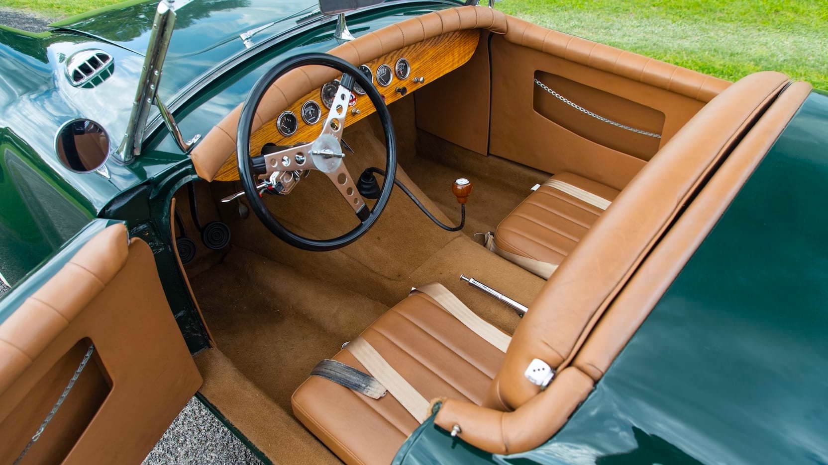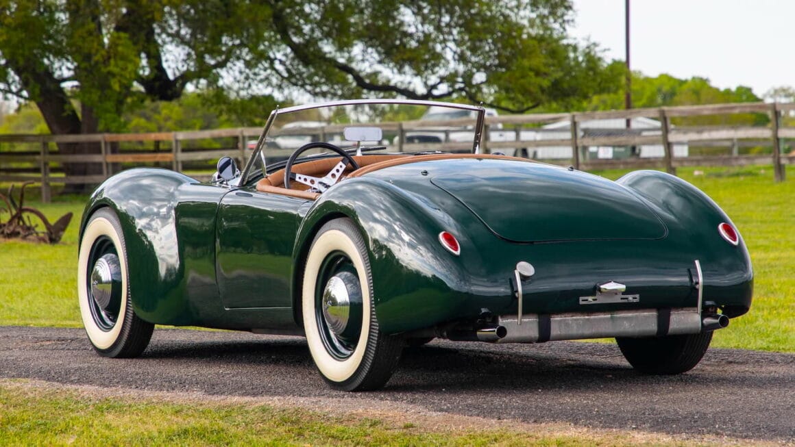 Ce roadster inhabituel est proposé à la vente aux enchères Mecum à Indianapolis. Ce que vous avez lu dans le paragraphe ci-dessus est essentiellement tout ce que nous savons sur cette “chose”, si ce n’est que Norman l’a immatriculé avec les documents de l’épave d’une Ford 1939 ! Dans la période d’après-seconde guerre mondiale, il a été construit par des milliers de particuliers, un nombre étonnant de voitures personnalisées un peu comme celle-ci, beaucoup d’entre-eux réutilisant des guimbardes d’avant-guerre peu coûteuses en tant que véhicules donateurs de leur châssis moteur et transmission. En “stock-trim” le Ford flathead V8 produit environ 90 chevaux ! Le pare-brise semble avoir été récupéré d’une réplique en kit de Cobra.