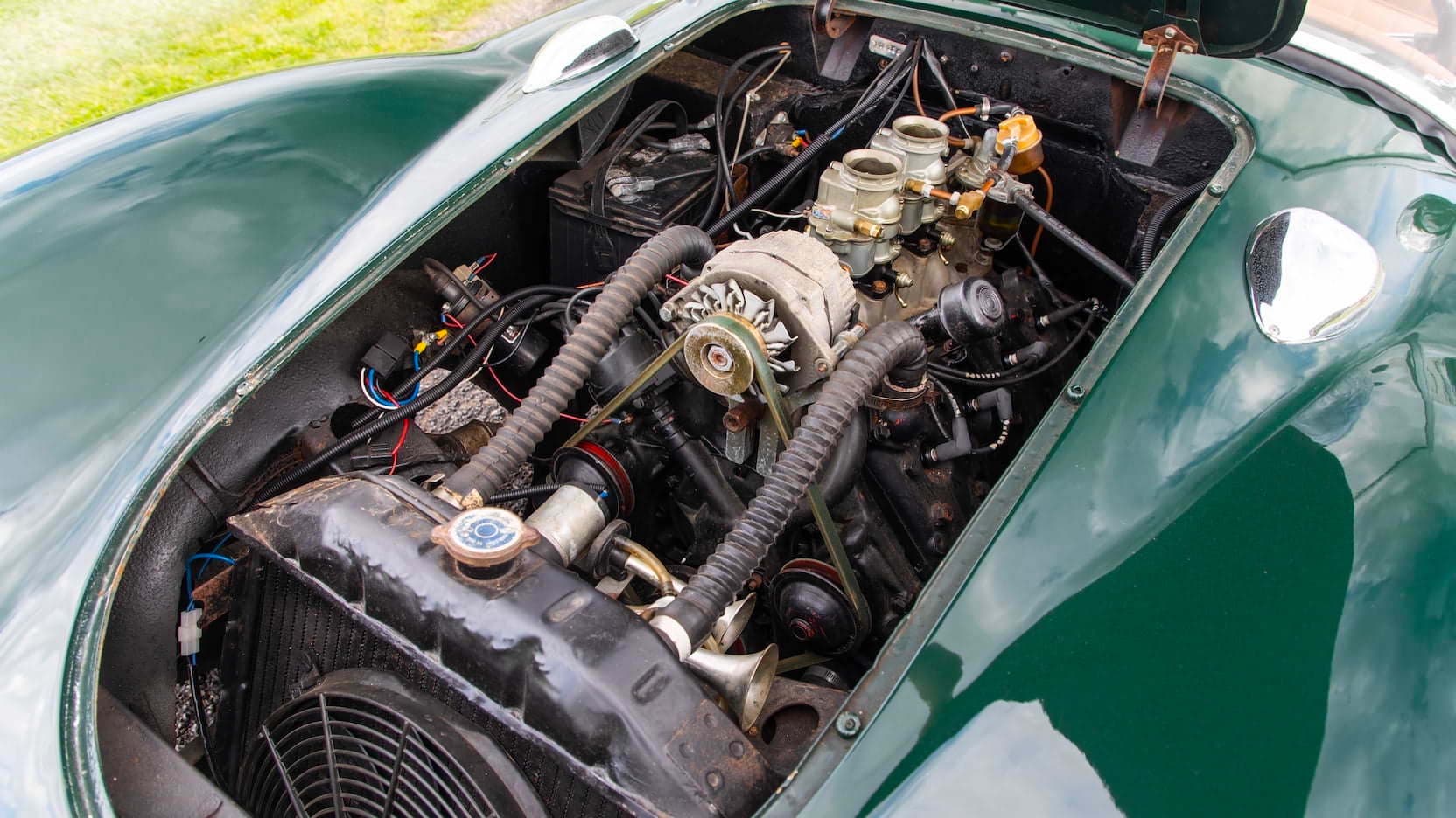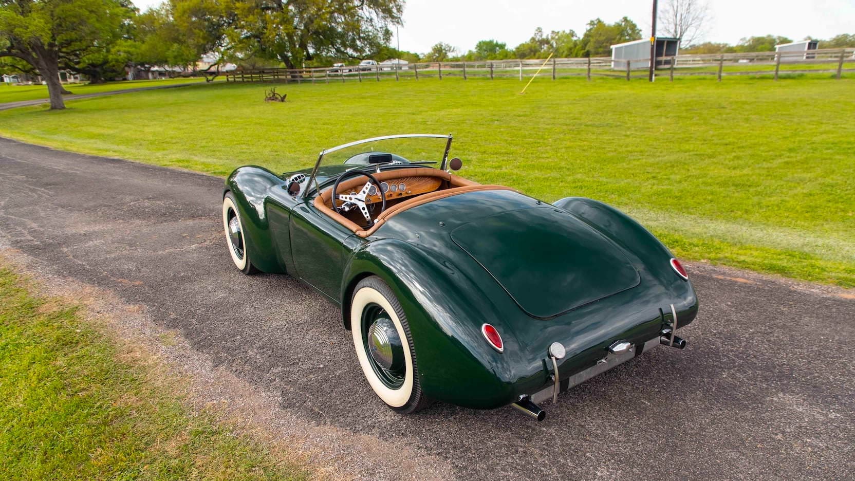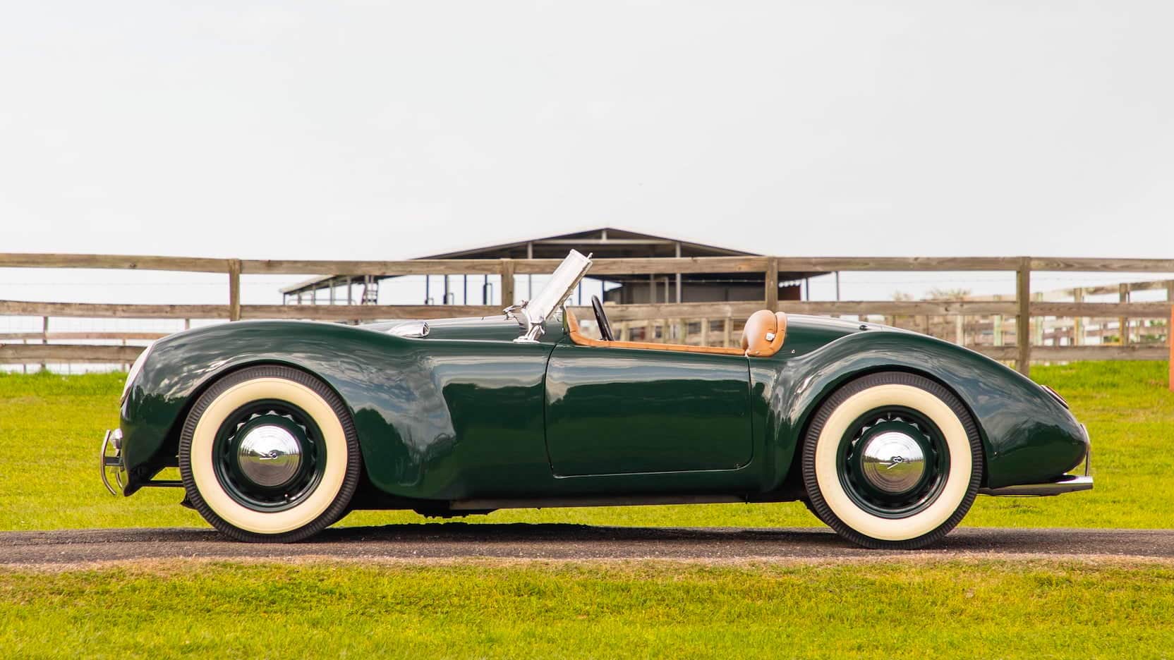 Ce roadster inhabituel est proposé à la vente aux enchères Mecum à Indianapolis. Ce que vous avez lu dans le paragraphe ci-dessus est essentiellement tout ce que nous savons sur cette “chose”, si ce n’est que Norman l’a immatriculé avec les documents de l’épave d’une Ford 1939 ! Dans la période d’après-seconde guerre mondiale, il a été construit par des milliers de particuliers, un nombre étonnant de voitures personnalisées un peu comme celle-ci, beaucoup d’entre-eux réutilisant des guimbardes d’avant-guerre peu coûteuses en tant que véhicules donateurs de leur châssis moteur et transmission. En “stock-trim” le Ford flathead V8 produit environ 90 chevaux ! Le pare-brise semble avoir été récupéré d’une réplique en kit de Cobra.