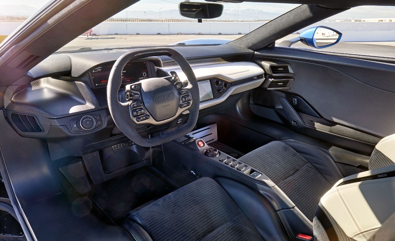 La rigidité du châssis entièrement en carbone (une première chez Ford après le “tout aluminium” de la GT de 2004), le poids plume de 1.385 kg et les technologies empruntés à la compétition sont autant d’ingrédients qui font de cette Ford GT une recette incroyable, à la croisée des chemins entre voiture de course et supercar plus “civilisée”.