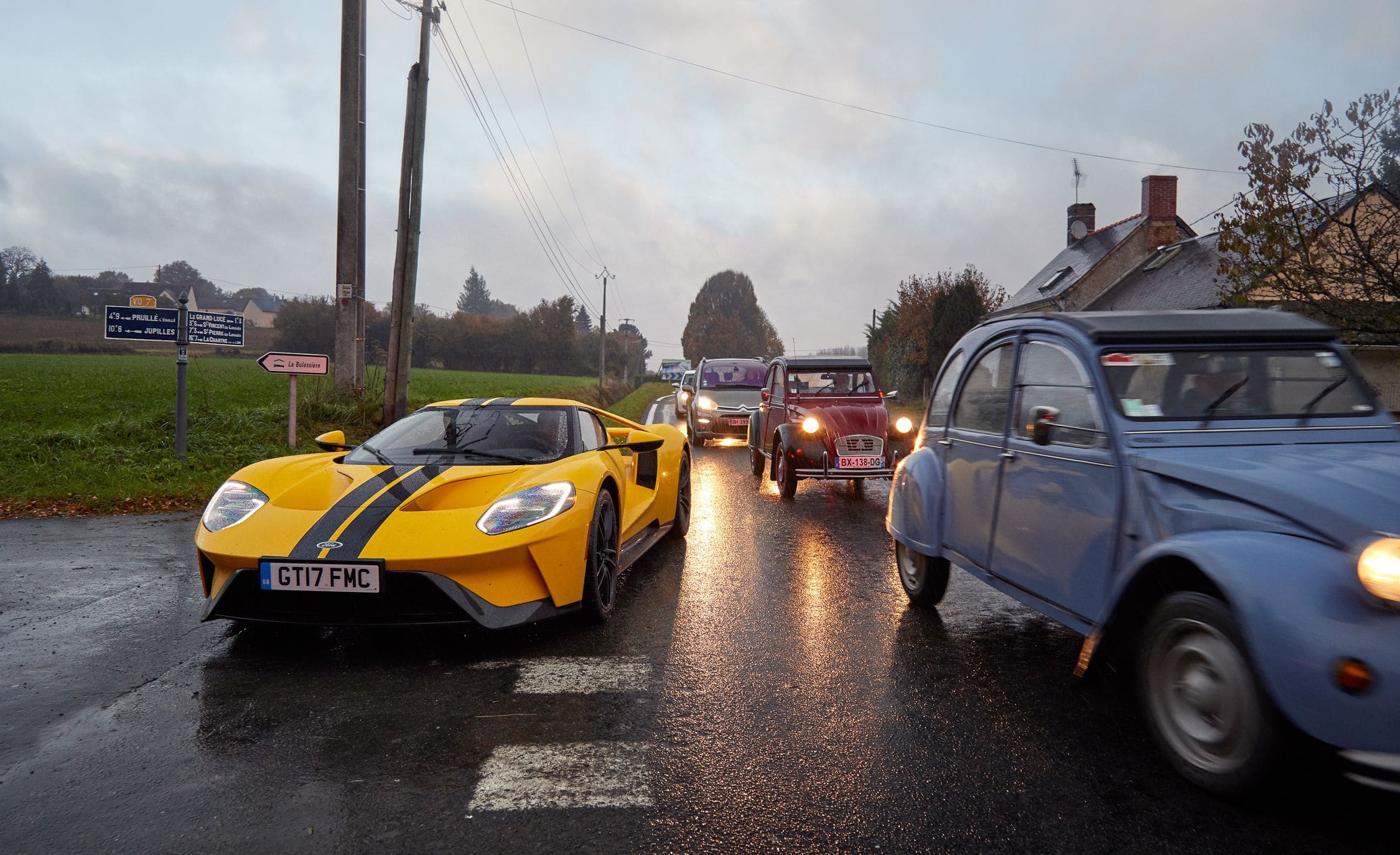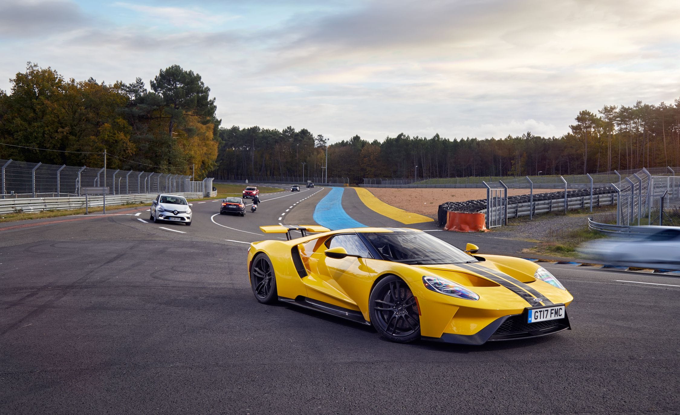 Mais je cause, je cause, je cause en écrits et vous êtes sur le point de ne plus lire, impatient que je daigne vous en raconter sur cette Ford GT… quoi vous en dire d’autre qu’elle distille des sensations… sans compromis, comme une voiture de course homologuée pour la route… c’est à dire qu’elle ne sert pas à grand chose d’utile… voilà un critère qui n’est guère habituel… au moment de m’inviter à essayer la GT, le service presse de Ford m’avait demandé ma taille… 1m90 et 100kg… “Impossible, l’habitacle de notre supercar ne peut accueillir les grands. Cette contrainte découle directement de l’histoire de la conception de la GT, modèle avant tout destiné à la compétition”.