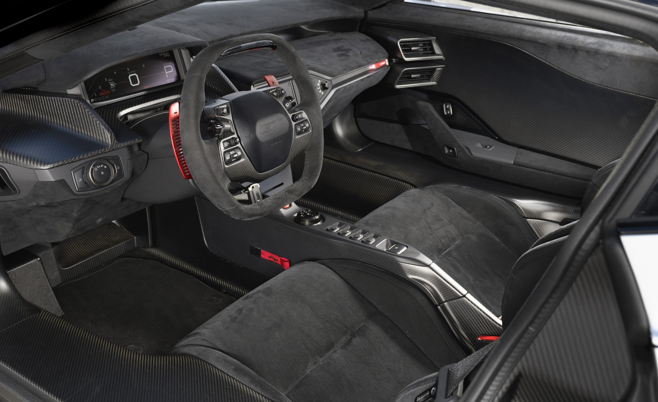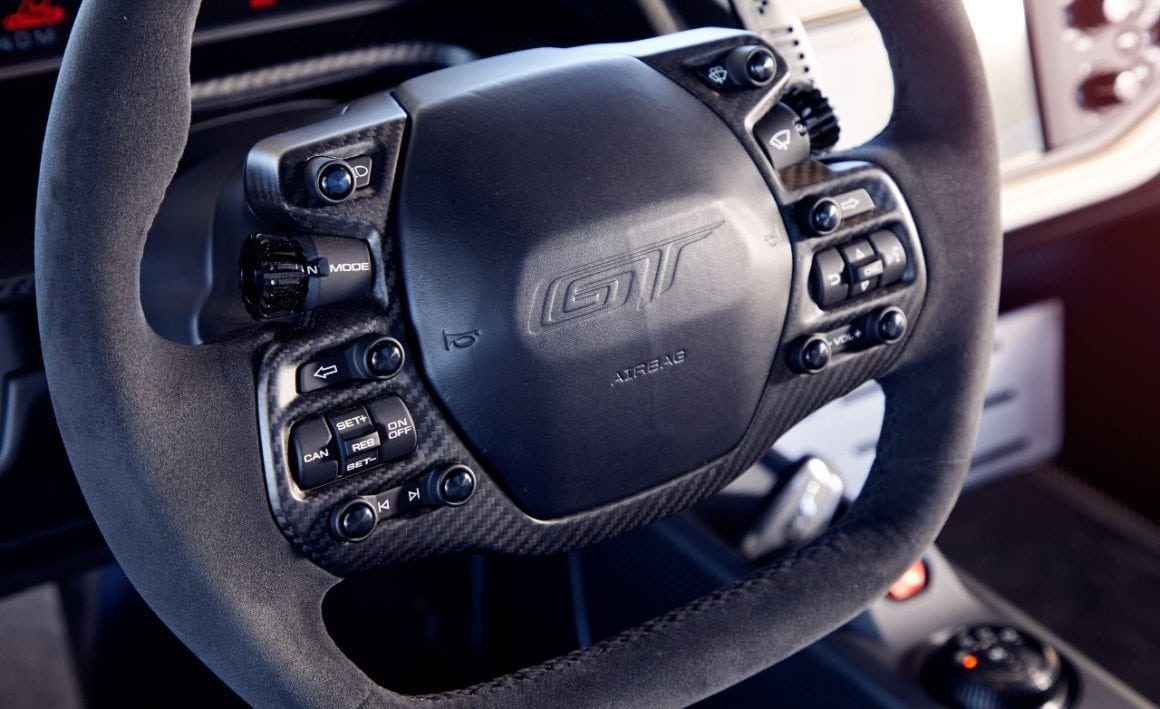 Sans compromis, la Ford GT sacrifie toutefois les aspects pratiques, avec un coffre réduit à… 11 litres… même la GT40 MkII de 1966 engagée en compétition offrait plus d’espace de chargement… le règlement de l’ACO imposait en effet à l’époque de pouvoir emporter deux valises… Ford avait alors décidé de placer deux boîtes en aluminium…, à proximité directes des échappements brûlants !