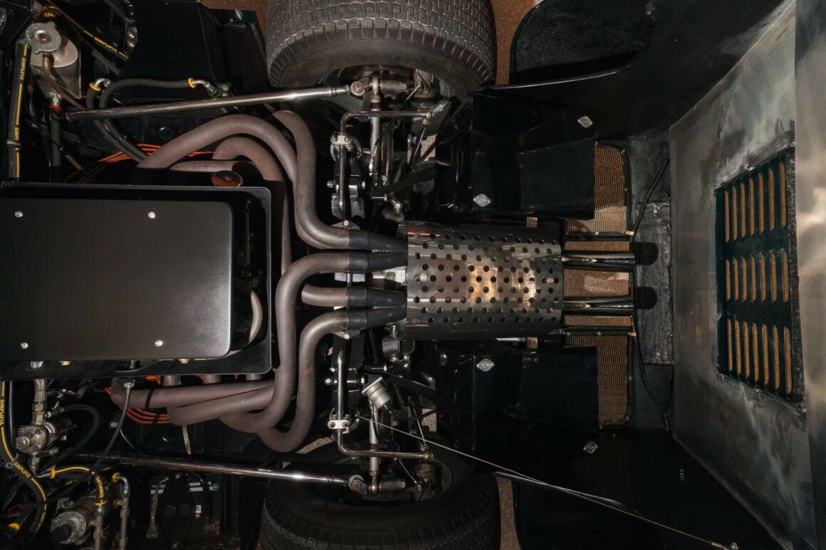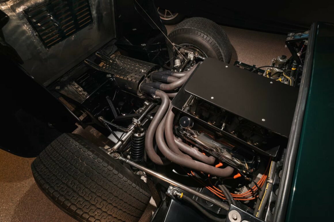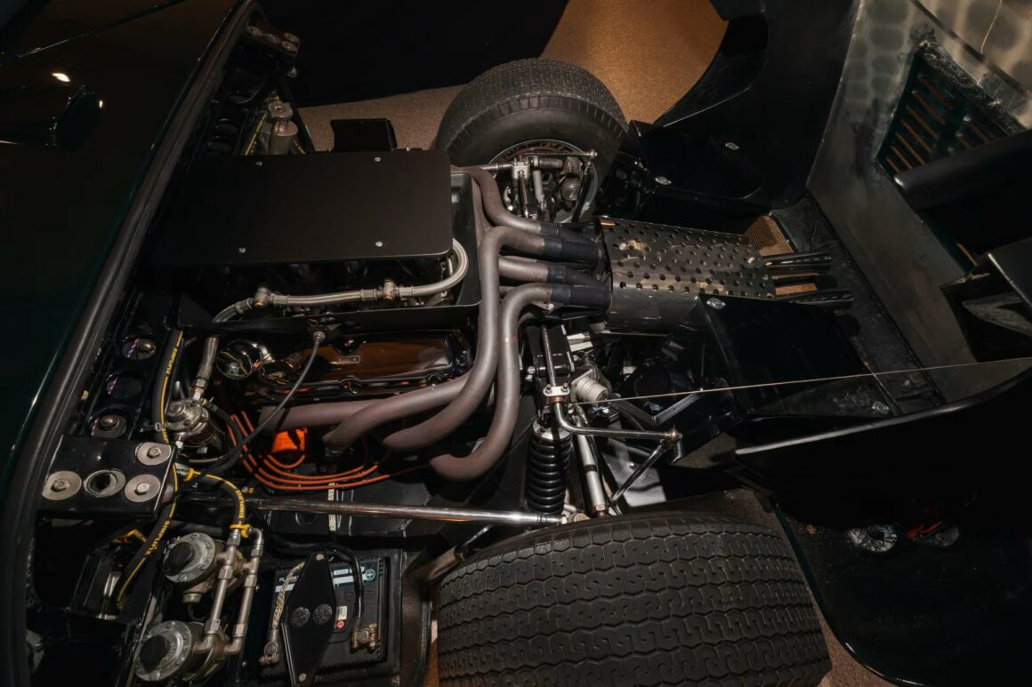 Il s’agit notamment de ses panneaux de carrosserie d’origine, qui avaient voyagé avec la voiture en tant que pièces de rechange mais ont été remontés en 2019. Elle conserve également sa “baignoire” d’origine et sa boîte-pont ZF 5DS-25 à 5 vitesses, ce qui est très rare pour une GT40, en particulier (comme l’a noté l’expert de la marque Ronnie Spain) une qui a fait l’objet de courses aussi intensives.