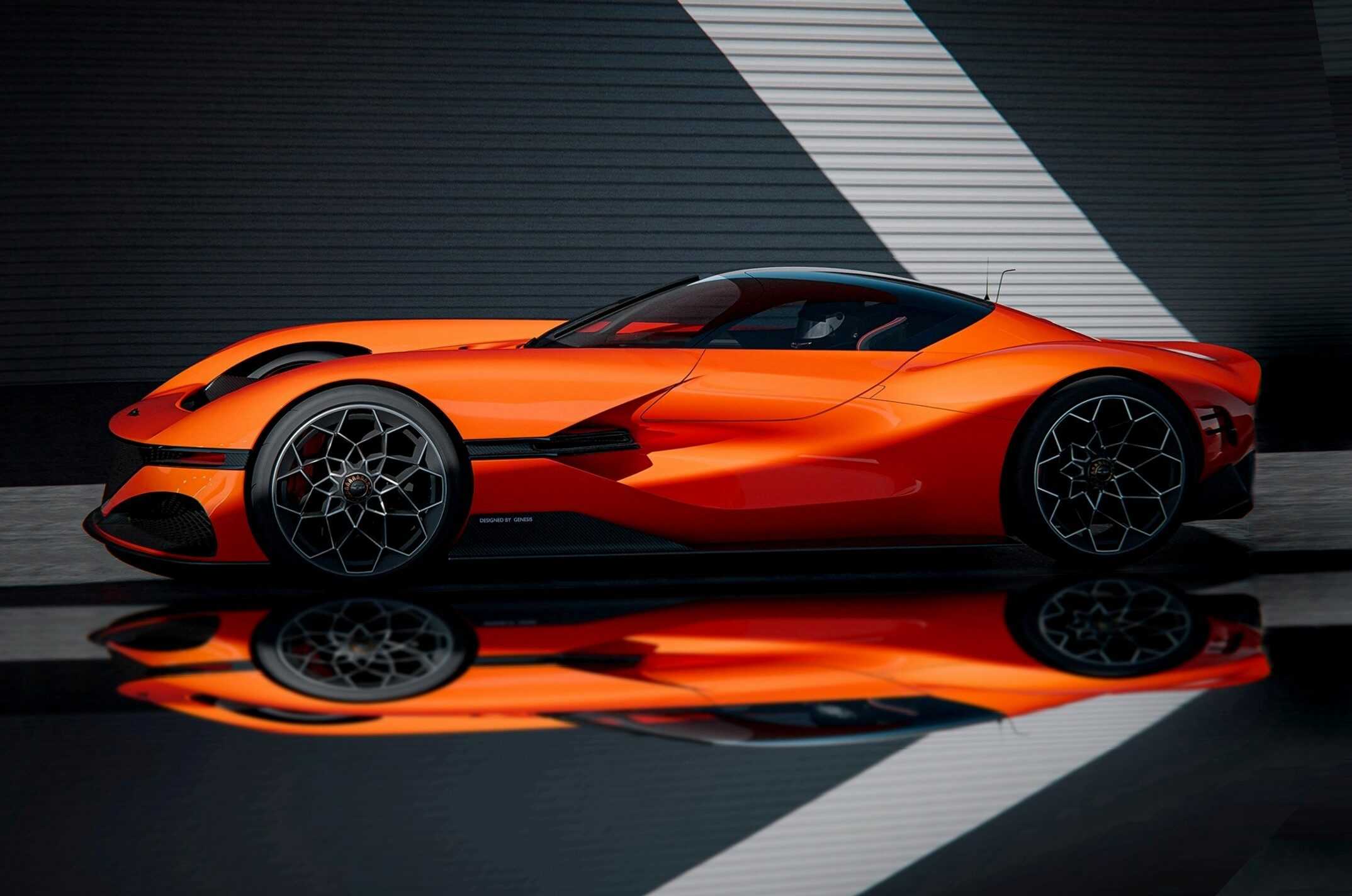 Les commandes de traction de la colonne de direction électronique apportent une manœuvrabilité précise. Les baquets surpiqués et rembourrés protègent le pilote sur piste, mais aussi en entrée et sortie de stands. La X Gran Berlinetta Concept dispose d’une fluidité aérodynamique exceptionnelle. Les designers ont réussi à obtenir un coefficient de traînée de 0,34 en intégrant des assistances aérodynamiques, mais aussi en orchestrant les flux internes et laminaires. La X Gran Berlinetta Concept est alimentée par un moteur central assisté électriquement par la technologie Genesis E-SC.