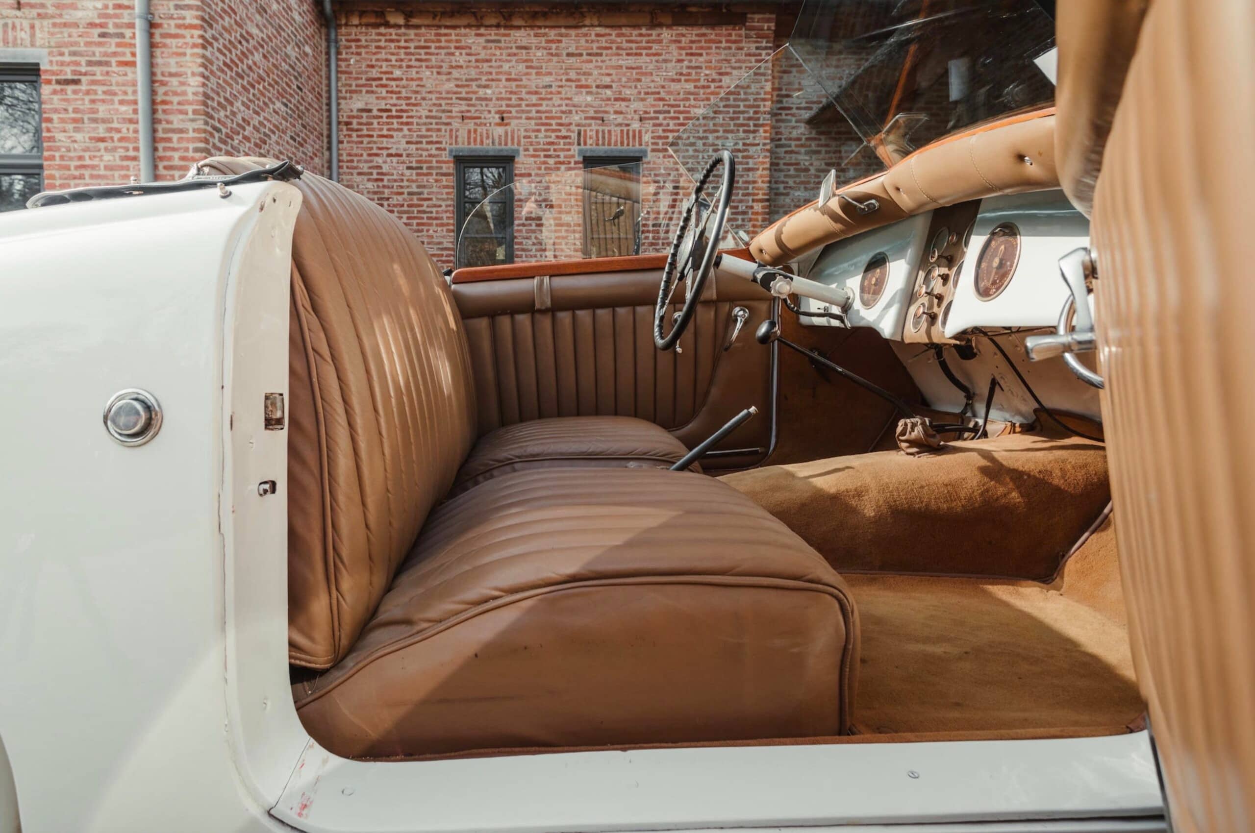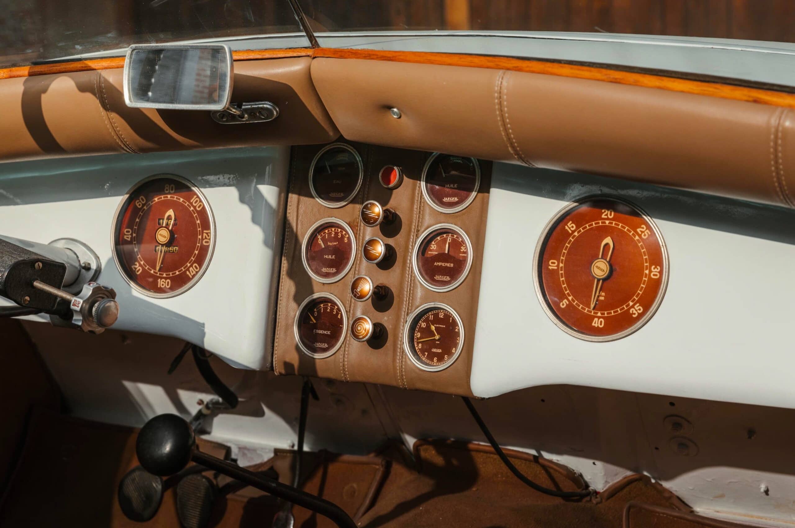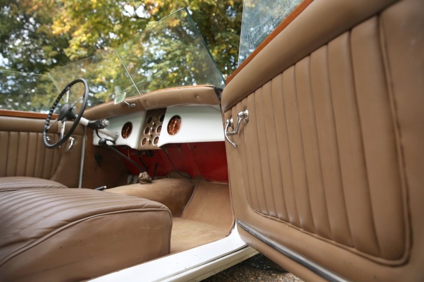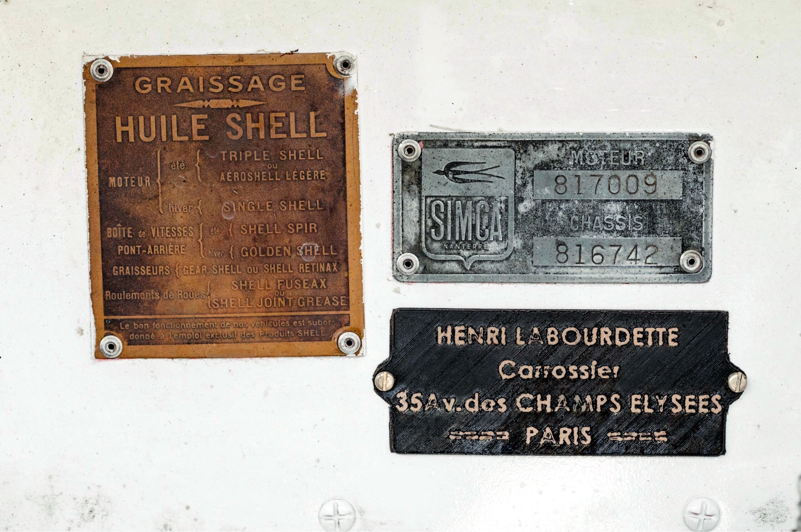 La somptueuse carrosserie présentée ici totalise seulement divers kilomètres (avec certification) et n’a eu que 2 propriétaires… elle a été vendue neuve puis d’occasion… avant d’être découverte dans un endroit secret et a toujours été entretenue quand il était utile et nécessaire (chez qui de droit et plus). La voiture est dans un état remarquable ! A titre d’anecdote, seuls les films plastiques de protection des somptueux sièges (en faux cuir véritable) ne se trouvent plus sur ceux-ci… le moteur d’origine, un magnifique 4 cylindres transversal Simca 1939 disposant d’un grand nombre de chevaux fougueux… et non pas anémiques et poussifs (les pôôôôvres) est efficacement secondé par une boîte adaptée…
