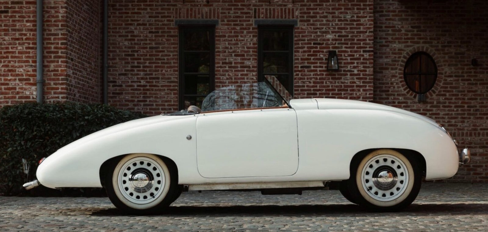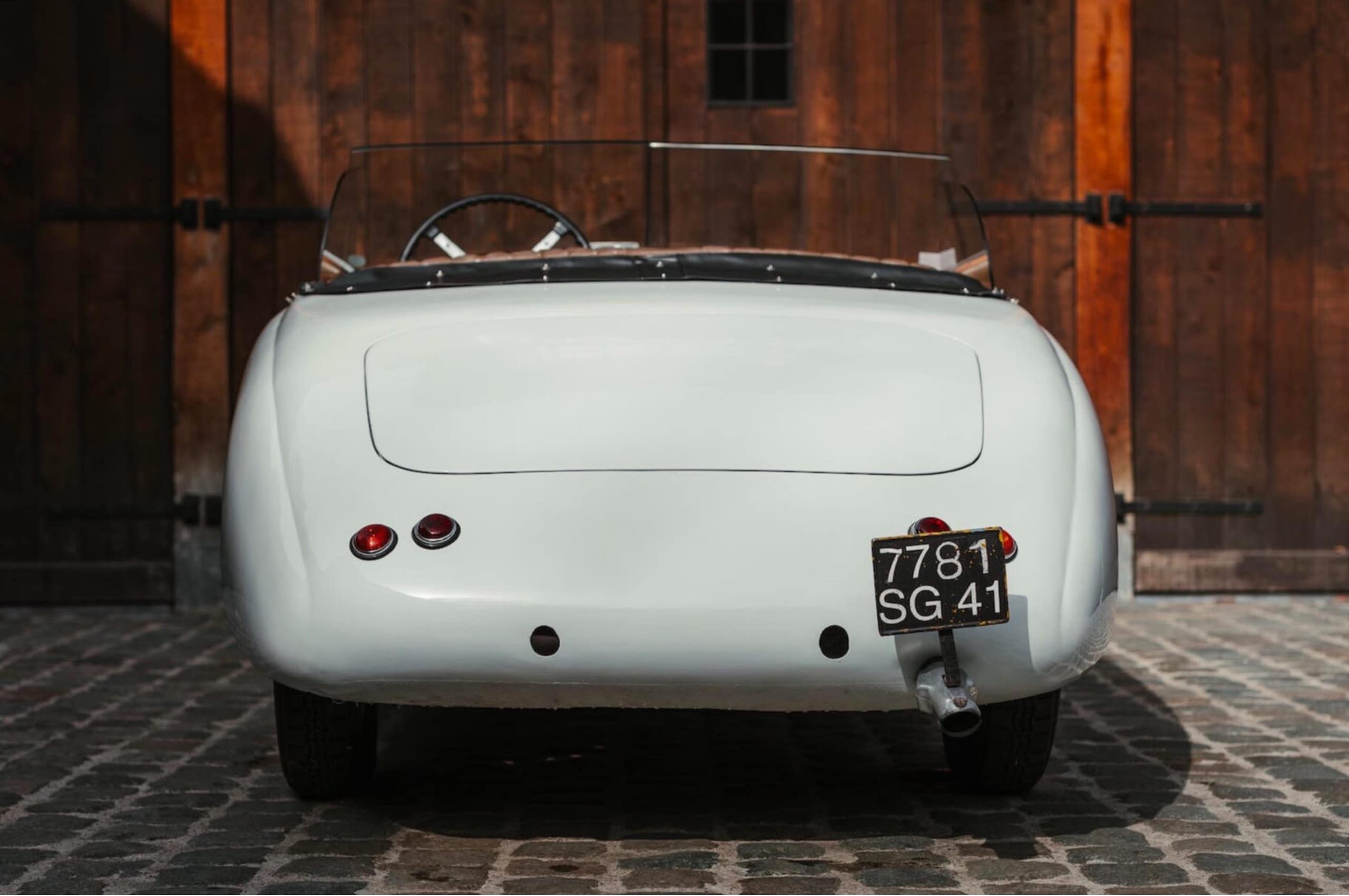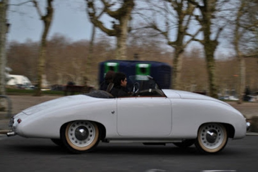 Cette chose présentée comme étant la seule Georges Irat Sport Biplace qui n’ait jamais été faite, est la réutilisation de la carrosserie du 3ième prototype de 1949 qui aurait été conçu pour relancer la production automobile de l’entreprise Française Georges-Irat dans le temps immédiatement après la Seconde Guerre mondiale. Cette voiture réalisée avec les pauvres moyens de l’immédiat après-guerre, affichait une forme aérodynamique de sabot (idem que la Porsche 356) et disposait d’une carrosserie et d’un chassis en magnésium, motorisés par le vénérable 1100cc flat-four Georges-Irat. La raison pour laquelle cet engin n’est pas entré en production n’avait rien à voir avec sa piètre qualité de fabrication, mais tout à voir avec l’état de l’économie Française de l’époque.