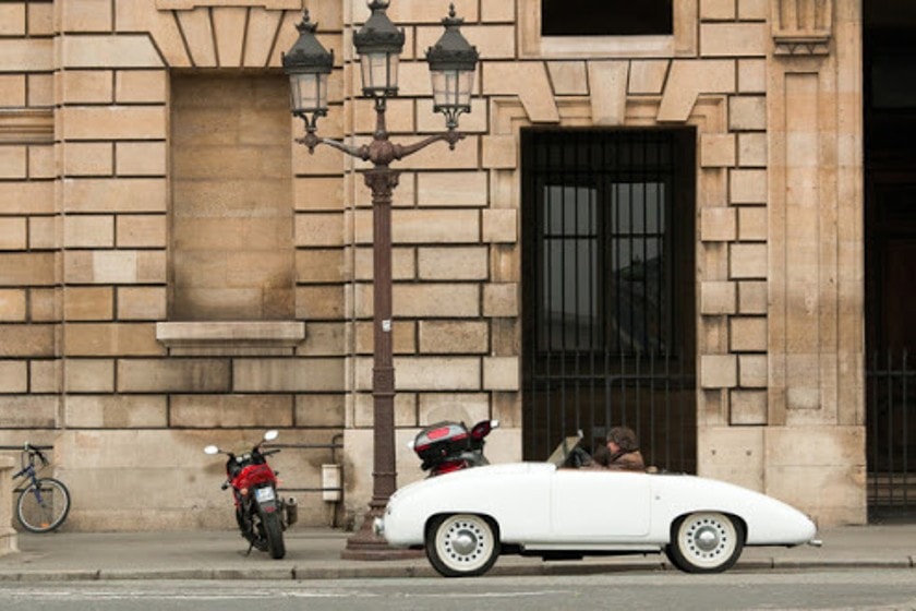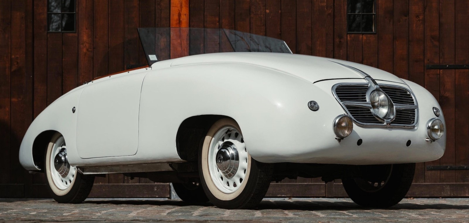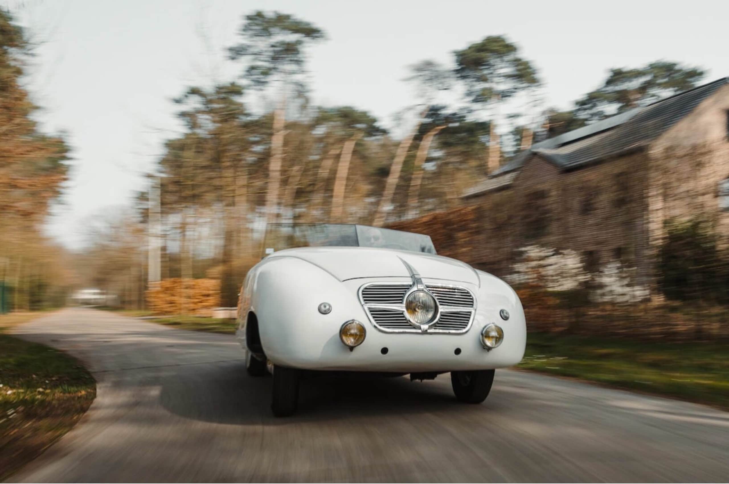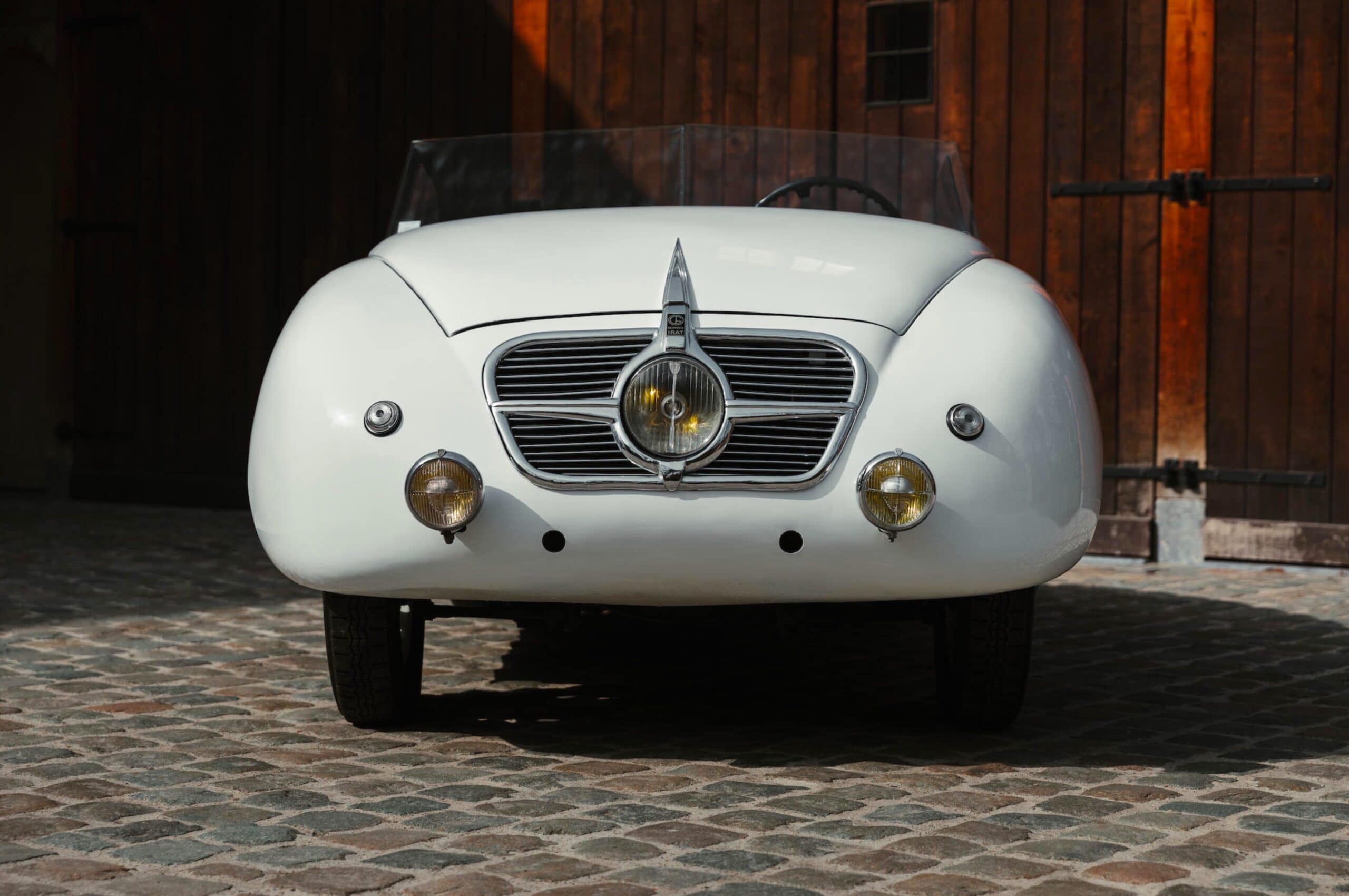 Cette chose présentée comme étant la seule Georges Irat Sport Biplace qui n’ait jamais été faite, est la réutilisation de la carrosserie du 3ième prototype de 1949 qui aurait été conçu pour relancer la production automobile de l’entreprise Française Georges-Irat dans le temps immédiatement après la Seconde Guerre mondiale. Cette voiture réalisée avec les pauvres moyens de l’immédiat après-guerre, affichait une forme aérodynamique de sabot (idem que la Porsche 356) et disposait d’une carrosserie et d’un chassis en magnésium, motorisés par le vénérable 1100cc flat-four Georges-Irat. La raison pour laquelle cet engin n’est pas entré en production n’avait rien à voir avec sa piètre qualité de fabrication, mais tout à voir avec l’état de l’économie Française de l’époque.