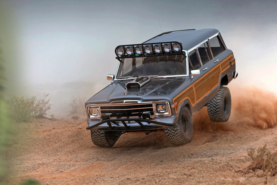 Le Wagoneer SJ était un véhicule de très grandes dimensions proposé en version deux et quatre-portes doté du nouveau moteur six-cylindres en ligne Willys Tornado à arbres à cames en tête développant 140 chevaux/104 kW et faisant ses débuts en 1962. Si le Tornado était alors considéré comme étant très économe en carburant, il pêchait par des problèmes récurrents de refroidissement et de carburation en altitude, ce qui conduira le constructeur à réduire le taux de compression en 1964, ramenant la puissance à 133 chevaux/99 kW… Les premiers Wagoneer SJ se distinguaient par leur calandre verticale abandonnée au profit d’une horizontale dans les années ’70. Pour des motifs d’économie, le capot conservait son bossage caractéristique permettant d’intégrer l’ancienne calandre. Avant de bénéficier d’un moteur AMC issu de la grosse berline Matador AMC, le Wagoneer était mu par une mécanique d’origine Jeep puis par un V8 Buick (le moteur qui deviendra le Rover équipant les Range Rover).