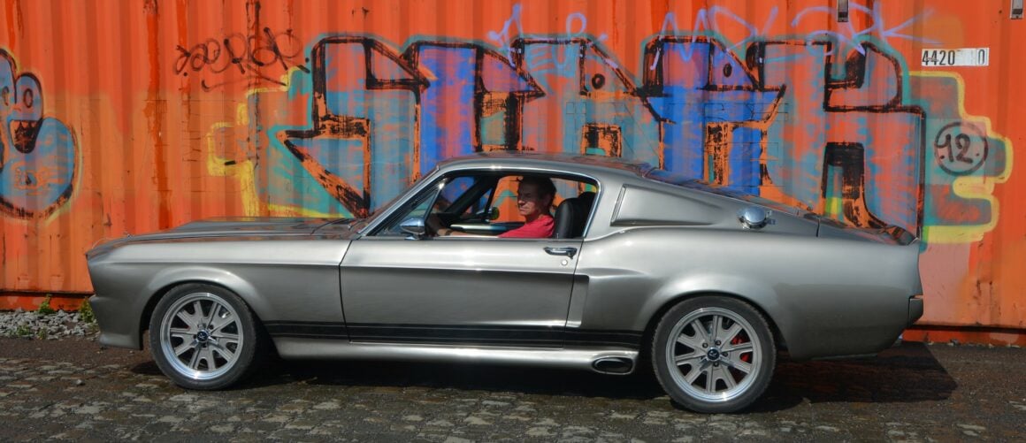 Bien…, j’en reviens à l’Eléanor qui illustre cet article et qui a été construite en Belgique par mon pote Karim B. (j’espère, après qu’il aura lu cet article, qu’il va le rester)… Sur le plan du concept, cette Eléanor va très loin, trop loin, sans doute… On est face à un épiphénomène atypique de “réplication” volontaire, qui se voudrait à la fois conscient et parodique mais qui plonge, du fait de la compétence de son maître d’œuvre (hello Karim, je me rattrape, là, hein !)…, non pas dans des abîmes encore plus obscurs, mais vers des sommets ou la vue est dégagée sur le comment du pourquoi qui meut certaines conditions humaines… Tel un alchimiste parkinsonien, Karim B. a tenté tout du long de la transformation d’une basique Mustang ’67, de doser premier et second degré pour créer une troisième grille de lecture… Le résultat a créé un quatrième degré… et cet article va générer d’autres degrés encore ! (Je m’en f… je vis à St-Tropez) !