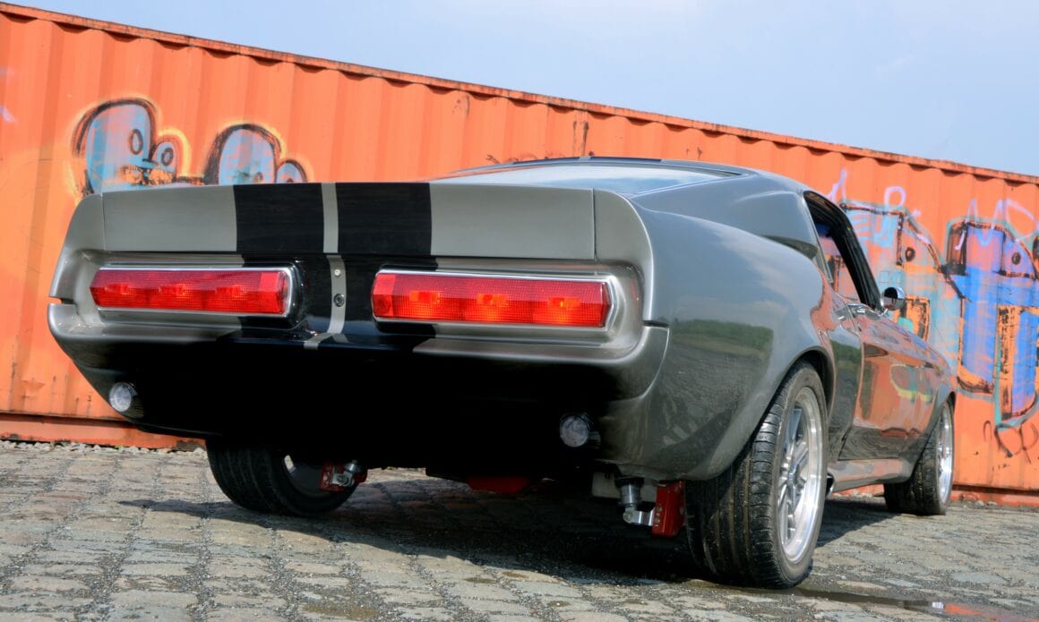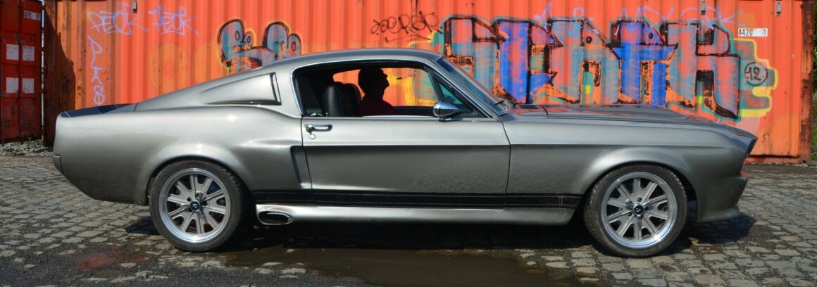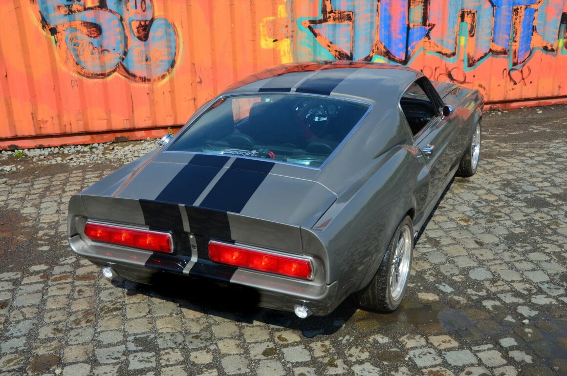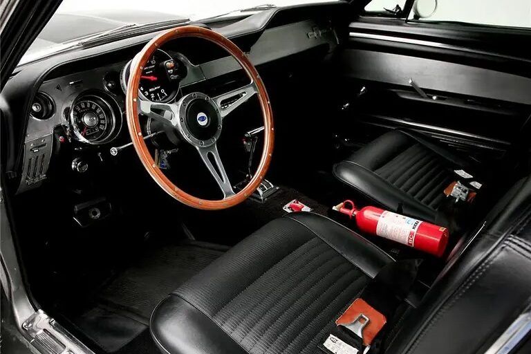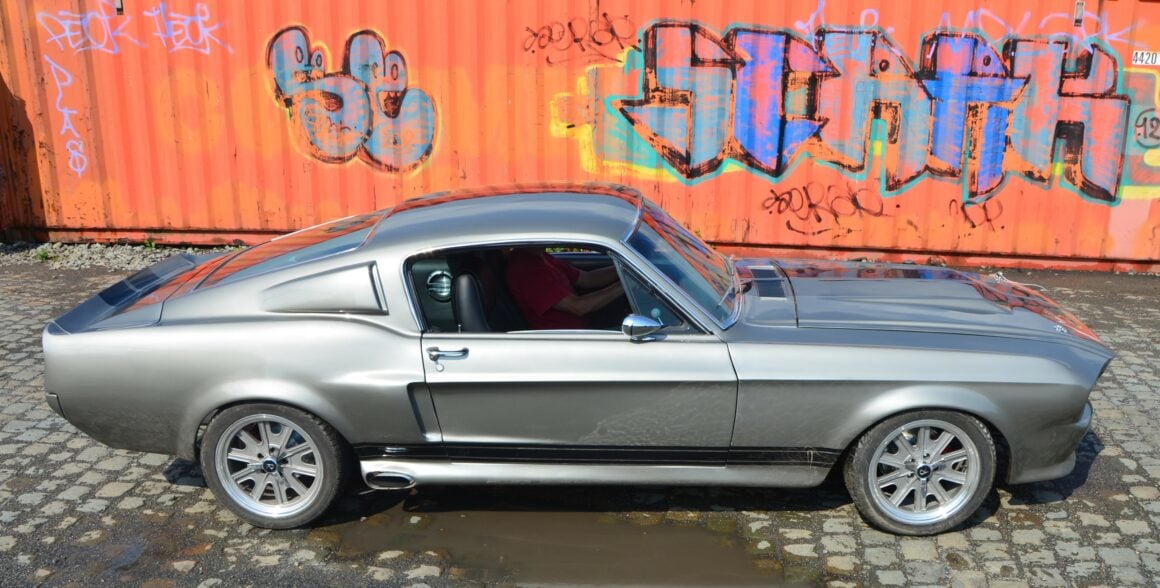 Reste le cas d’Eleanor…, La vraie Mustang Shelby de ’67 ne ressemblait pas vraiment à l’Eleanor du film “60 Secondes…, qui plus est, ni l’une ni l’autre n’étaient la même Mustang héroïne du film La Grande Casse, une Mustang Mach 1 de 1973… En fait la dite surnommée Eleanor a été appelée Shelby GT-500 sans aucune autorisation de Carroll Shelby ! Elle avait été imaginée pour ce film, élaborée sur la base d’une simple et basique Mustang Fastback de 1967 avec un kit carrosserie créé pour l’occasion, de même qu’une peinture spécifique, gris tungstène, ornée de deux bandes racing noires de type Shelby, pour lui donner un look ravageur et unique. En effet, pour les producteurs du film “60 Secondes”, plusieurs choses ont du être prises en considération : Dans un premier temps, il fallait donner une grande égérie au film, forcément une Muscle-Car, étant donné que l’on parle d’un film Américain… Il fallait aussi un modèle que tout le monde connait et qui fait rêver, donc forcément, une Mustang… Une Muscle-Car Mustang… De la à en faire une fausse Shelby GT 500 en kit-plastique, la Mustang basique était donc la candidate idéale et rêvée !