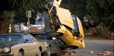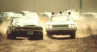 Le bonheur d’Halicki était d’amasser sans cesse une collection de véhicules exotiques, farfelus et rares ! Mais c’était calculé afin de les démolir, avec un plaisir non dissimulé, dans ses films d’aventures automobiles ! Les voitures de police étaient de vraies voitures de police achetées aux surplus de la police… et les divers accessoires (dont les armes) venaient directement de sa collection privée en tant que réalisateur de films. Les scènes d’actions allaient de la simple cascade de foire à la folie la plus totale, comme par exemple une voiture qui explose en roulant et se retrouve projetée au dessus de la voiture qui la précède (une séquence inégalée depuis) ou un saut au dessus d’un avion ! Le cinéma dans tout ce qu’il a de plus basiquement américain, une sorte de version soft du film “Crash” de Ballard, la mécanique devenant une sorte de palliatif sexuel, un film marqué au fer par une forte connotation fétichiste. On retiendra notamment le personnage de tueuse interprété par Rita Rickard, une des rares protagonistes non mécanique qui bénéficiait de toutes les attentions du réalisateur (et qui fera une apparition dans “Deadline auto theft”). Une jolie brune habillée tout en noir, peu loquace, amatrice de grosses cylindrées et adepte des gros chibbres et calibres. Un parfait résumé de la sainte trinité selon les américains, belles voitures, jolies filles gros nichons et gros flingues. Pour l’anecdote, certains auront remarqué que l’actrice arbore dans le film une paire de lunettes avec ces vraies initiales RR.